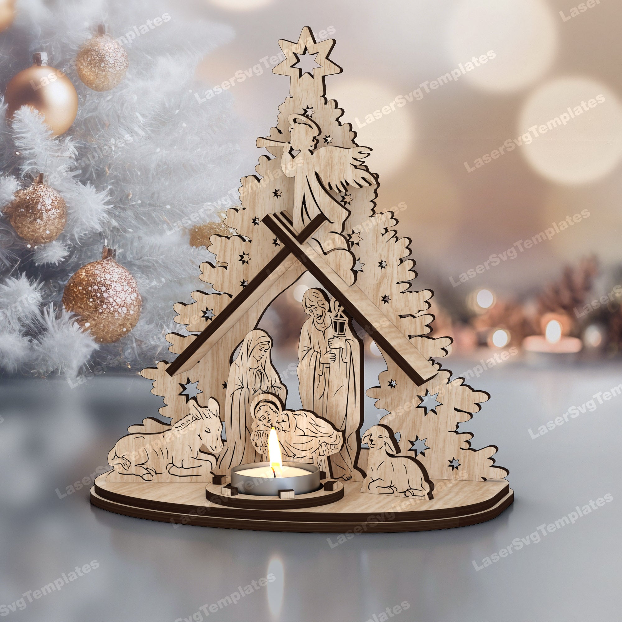 Krippe Kerzenhalter lasergeschnittene SVG-Datei