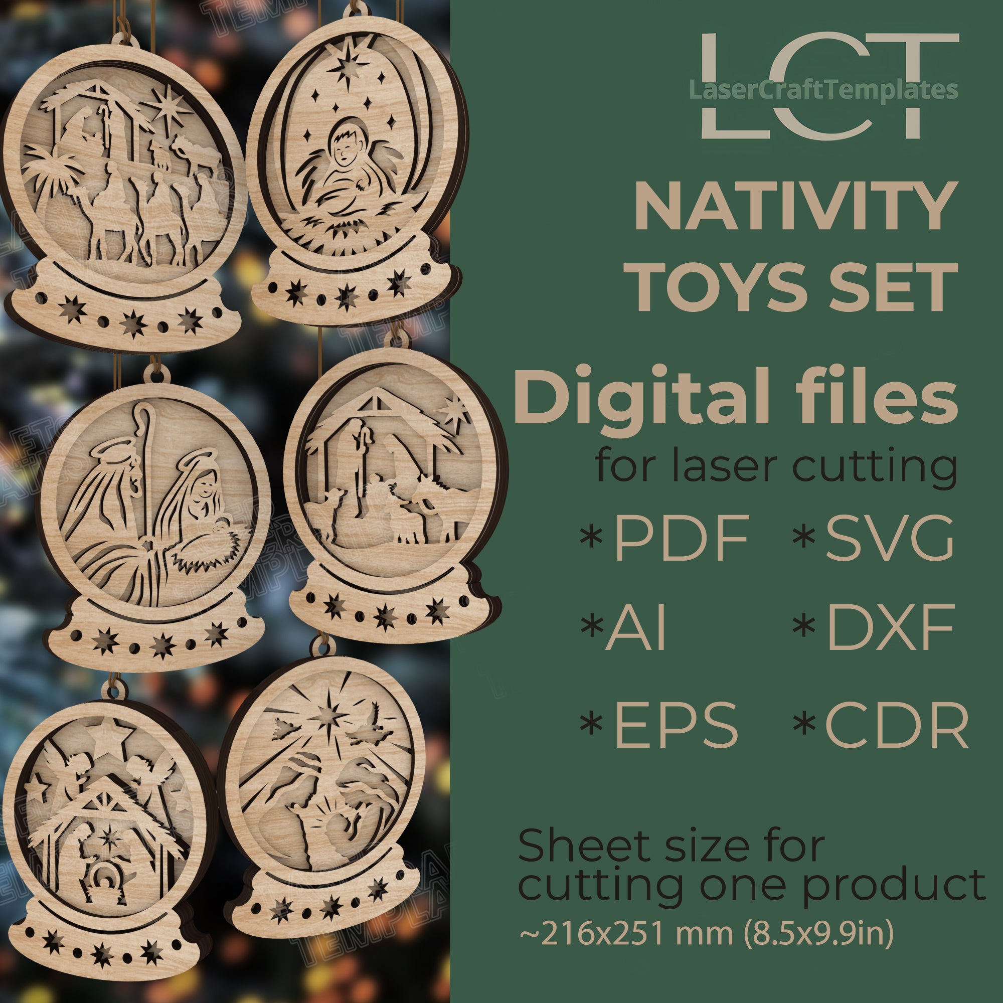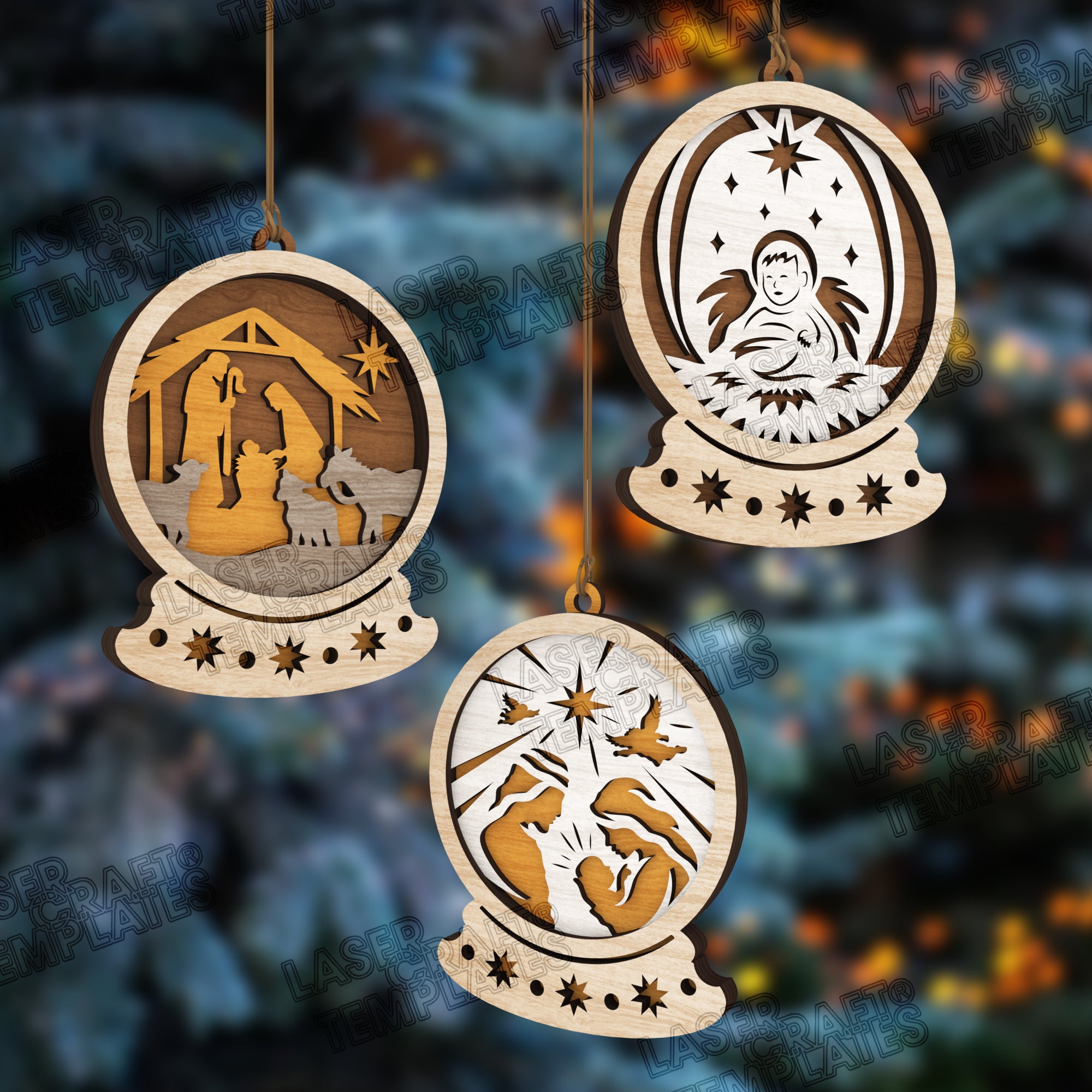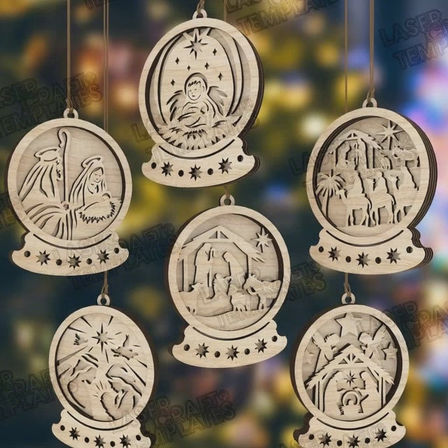 🔹 Globus Krippe 6 Ornamente lasergeschnittene SVG-Datei