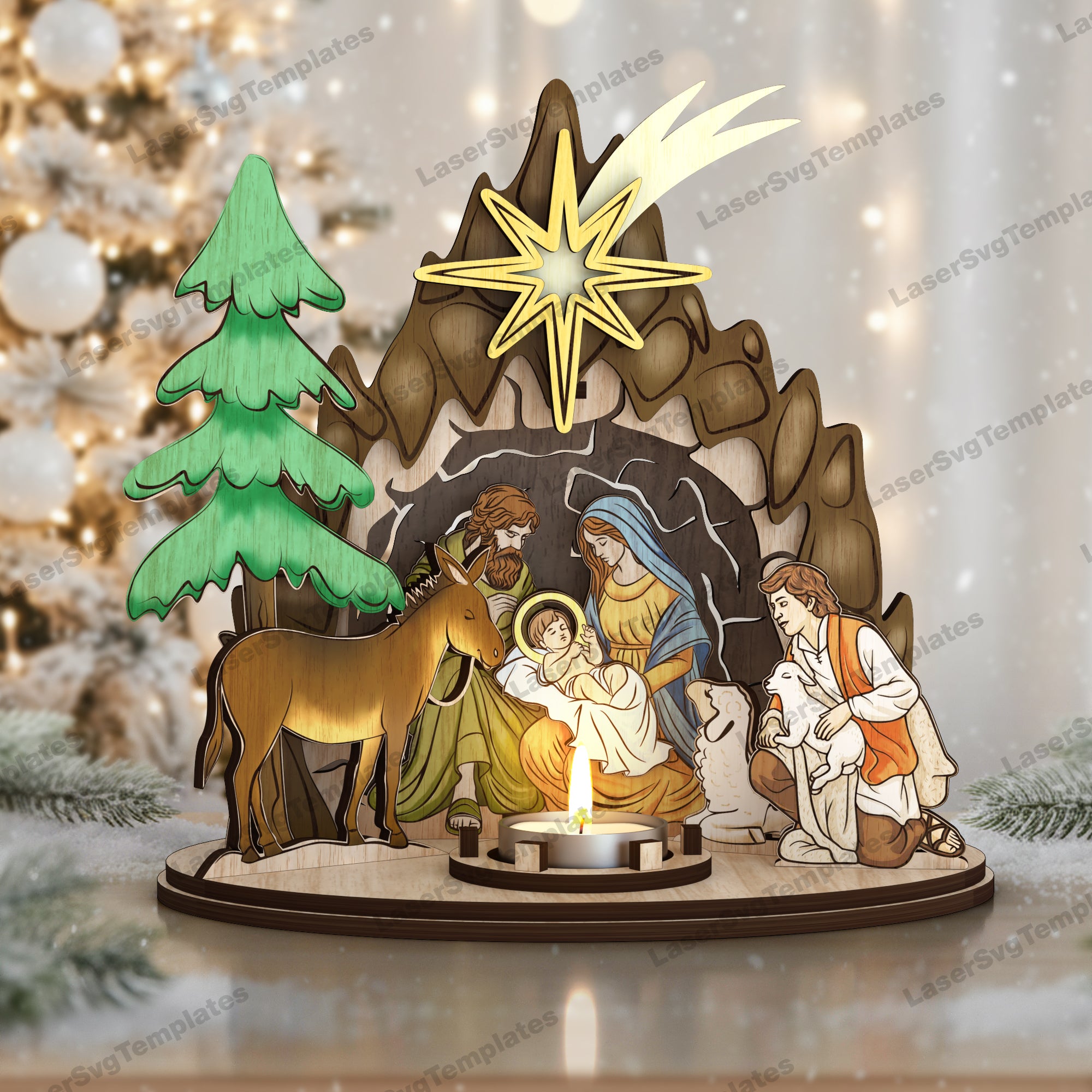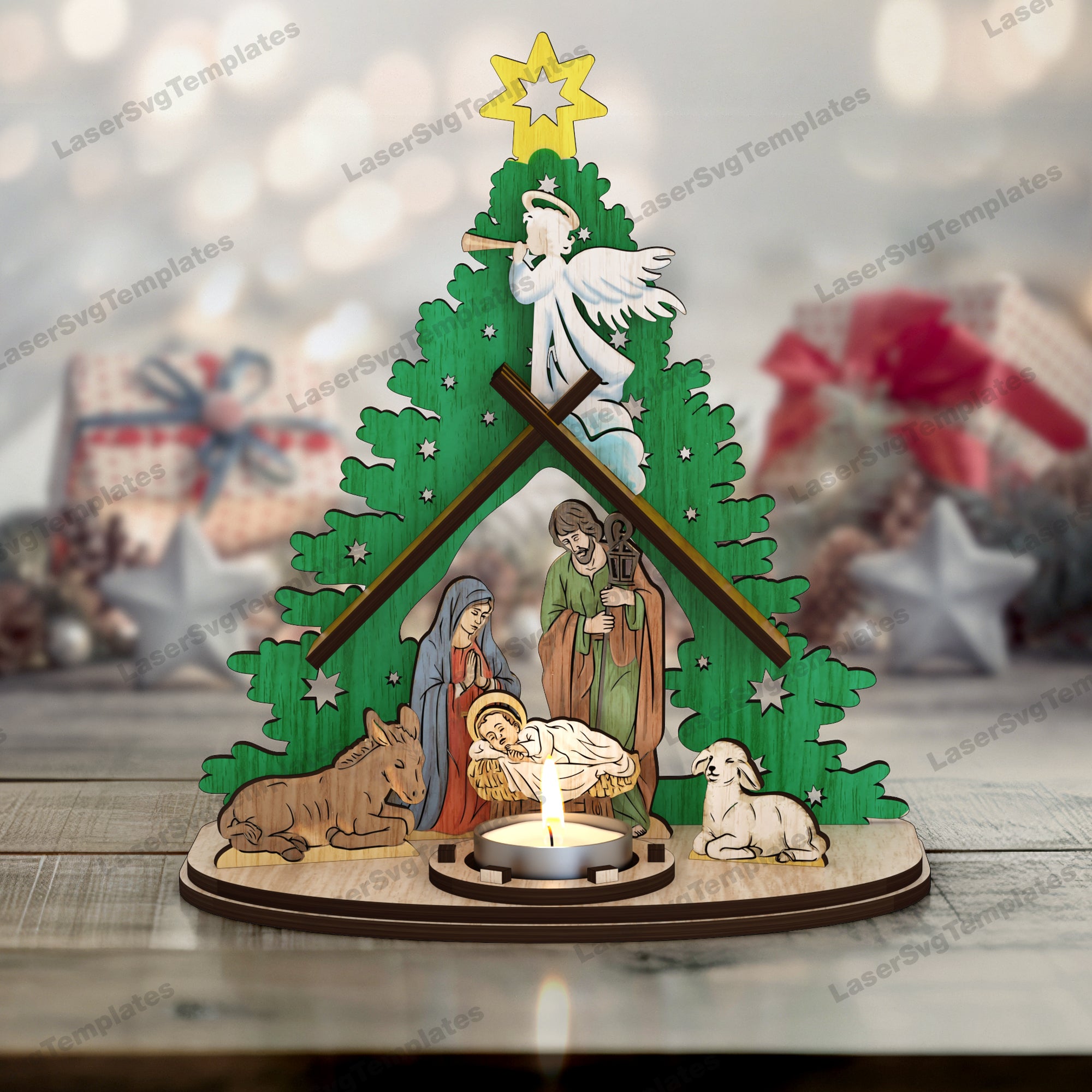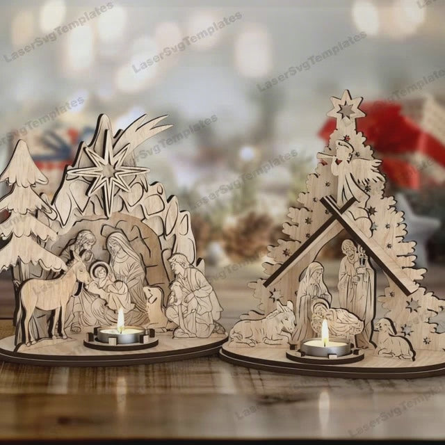 Krippen-Kerzenhalter 2er-Set, lasergeschnittene SVG-Datei