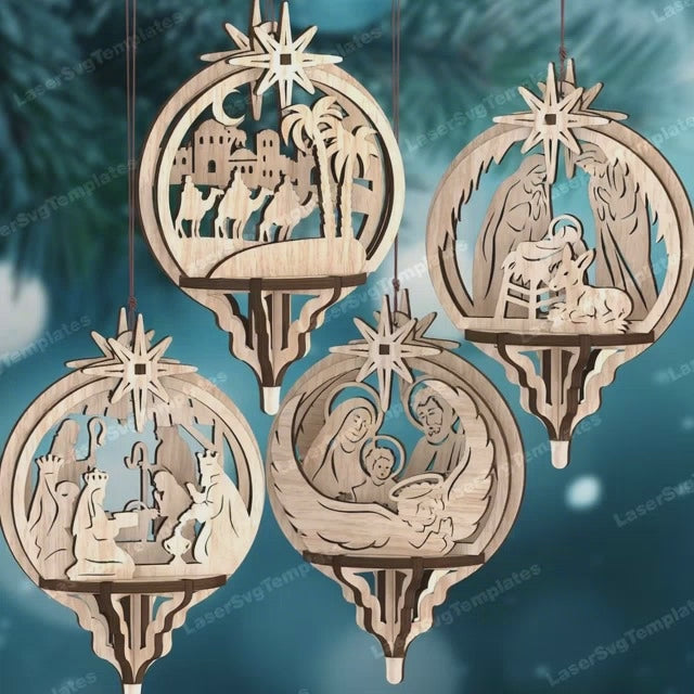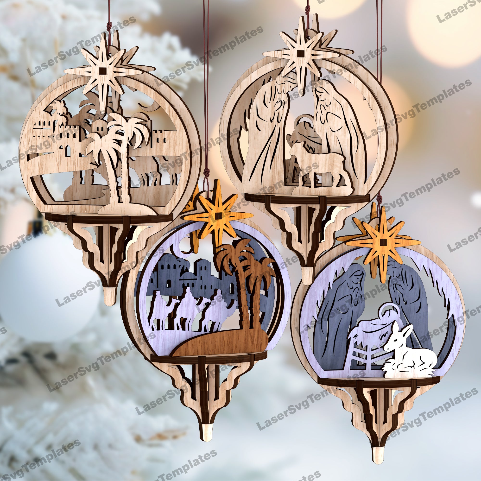 3D-Krippenbaumschmuck, 4 Bündel, lasergeschnittene SVG-Datei