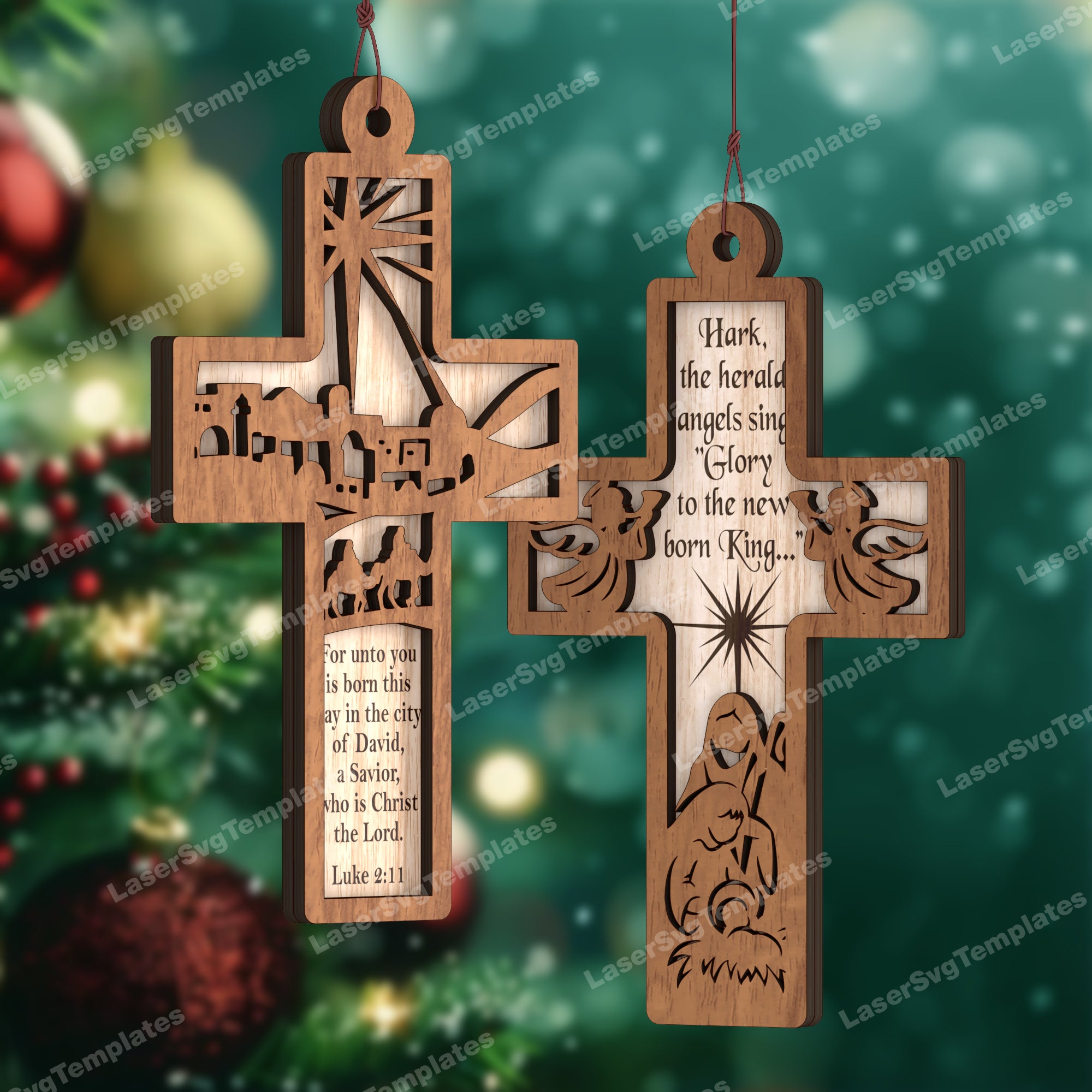 — Krippenbaum-Kreuz-Ornamente-Bundle, lasergeschnittene SVG-Datei