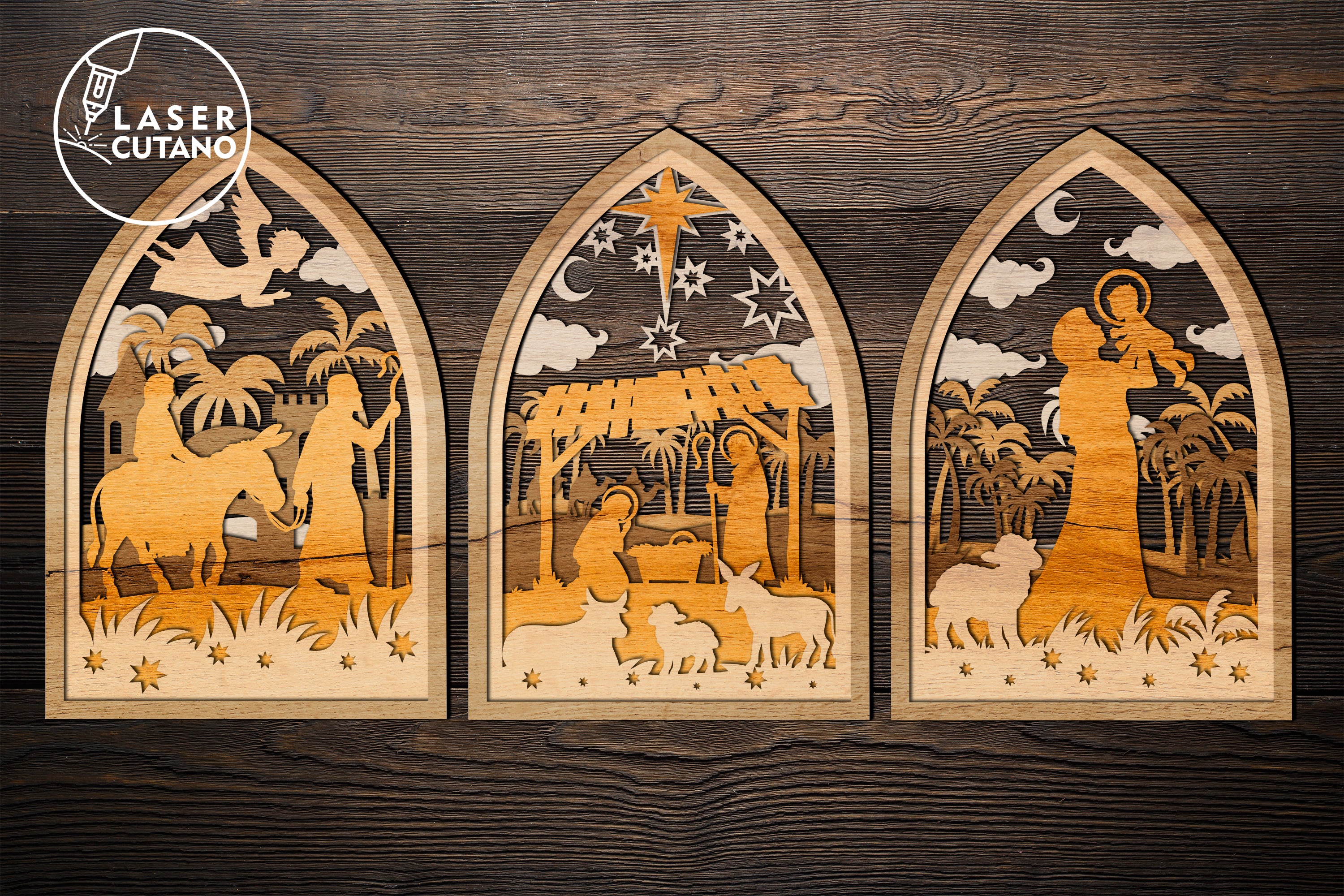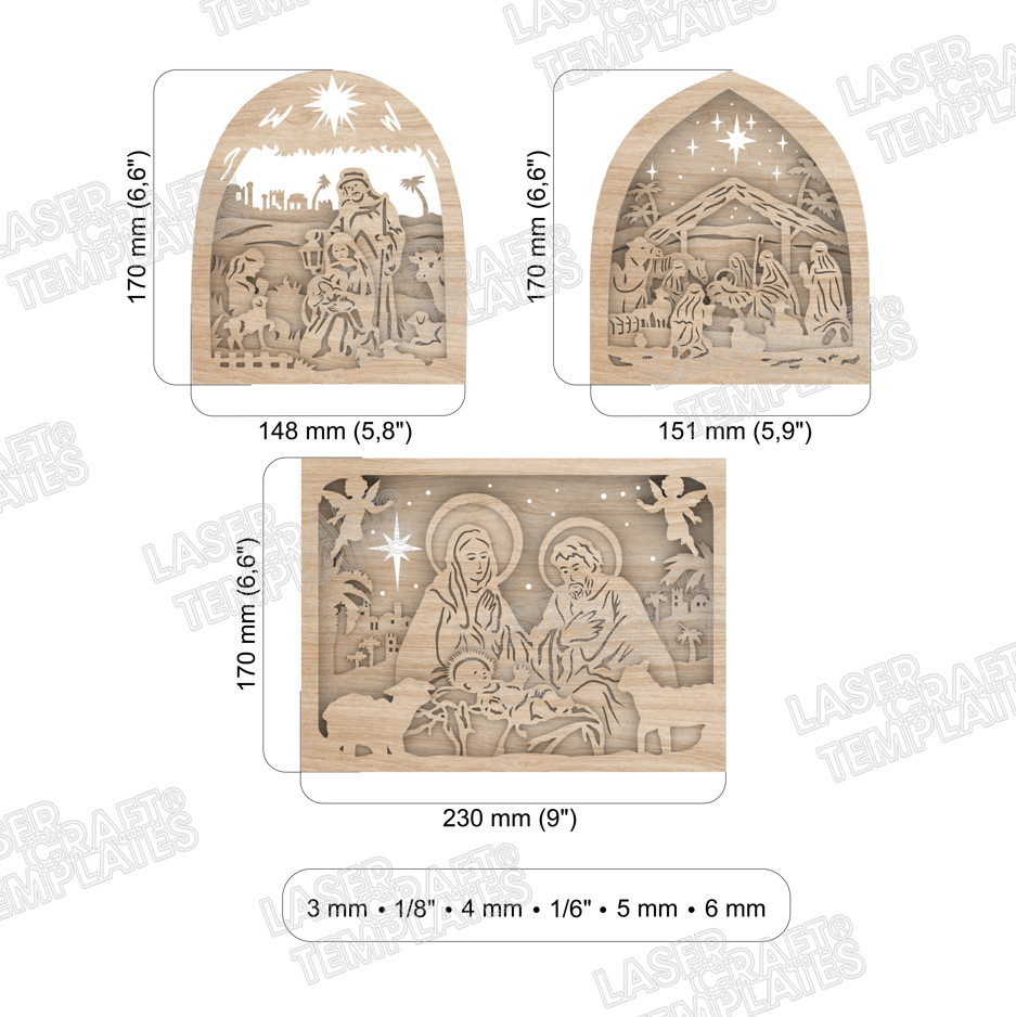 Weihnachtskrippe Multilayer Dekor 3 Set Laser Cut SVG Datei