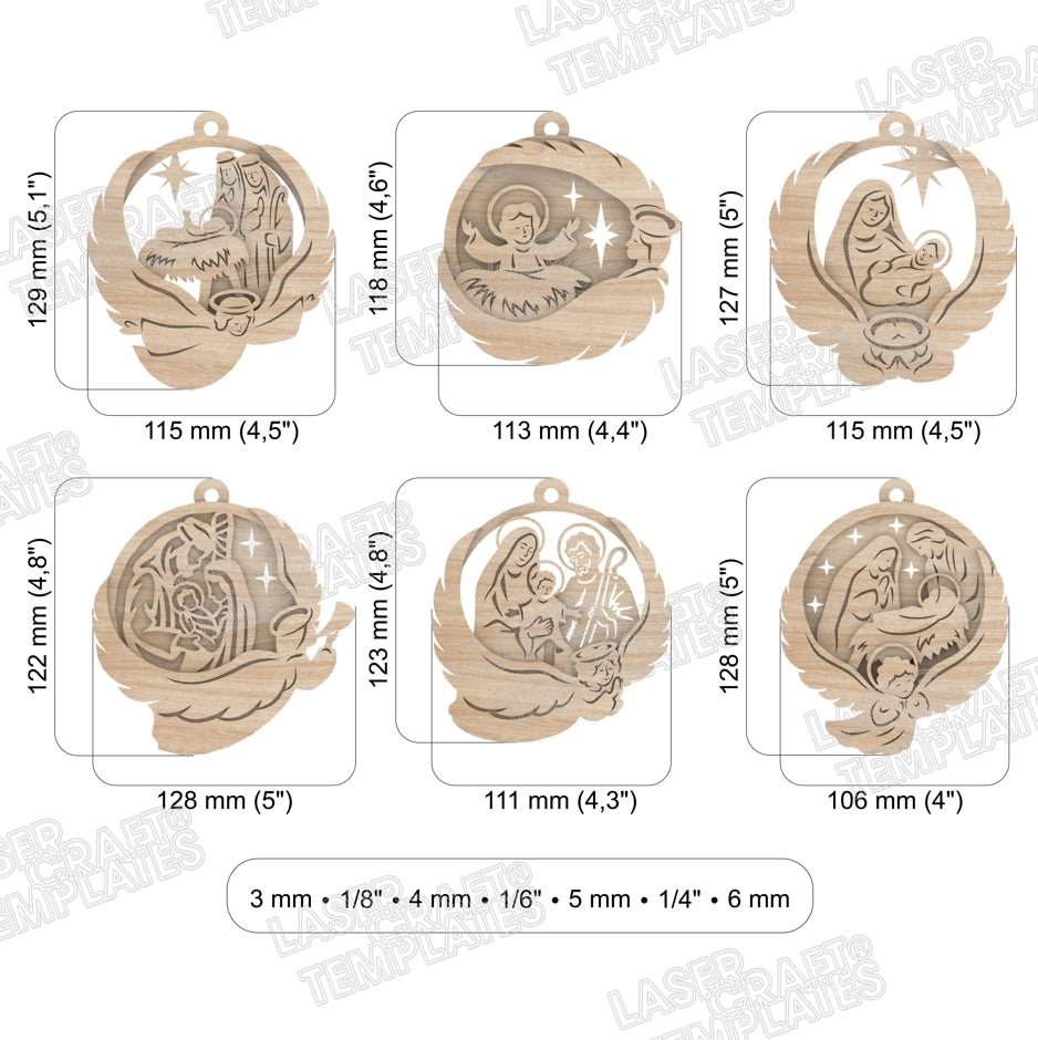 Lasergeschnittene Weihnachtskrippe mit 6 Ornamenten im SVG-Format