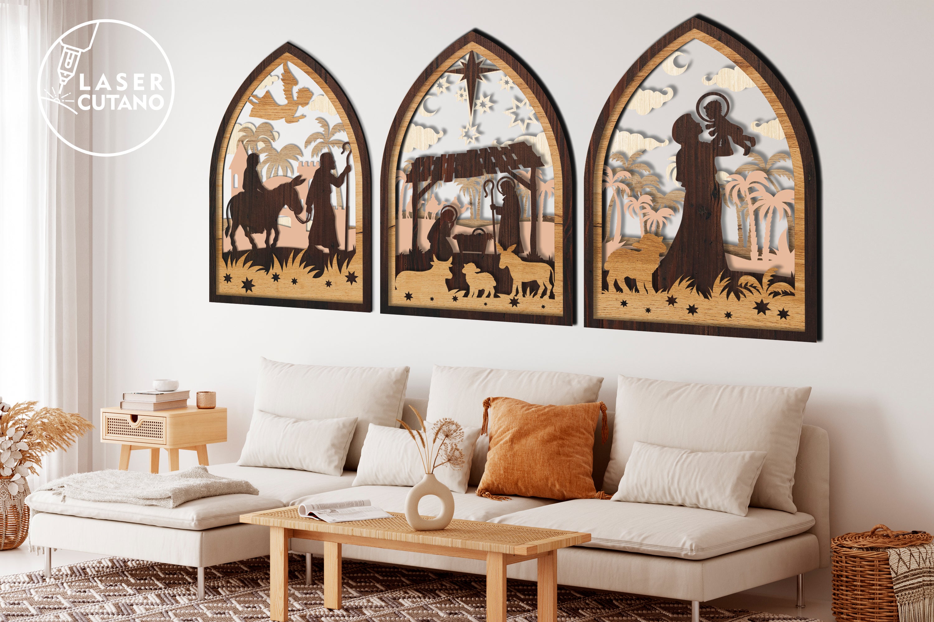 Lasergeschnittene Krippen-Tischdekoration, 3 Bündel, SVG-Datei