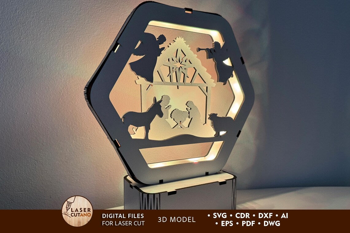 Krippe Weihnachten Kreuz Dekor Tischlampe 3 Bundle lasergeschnittene SVG-Datei
