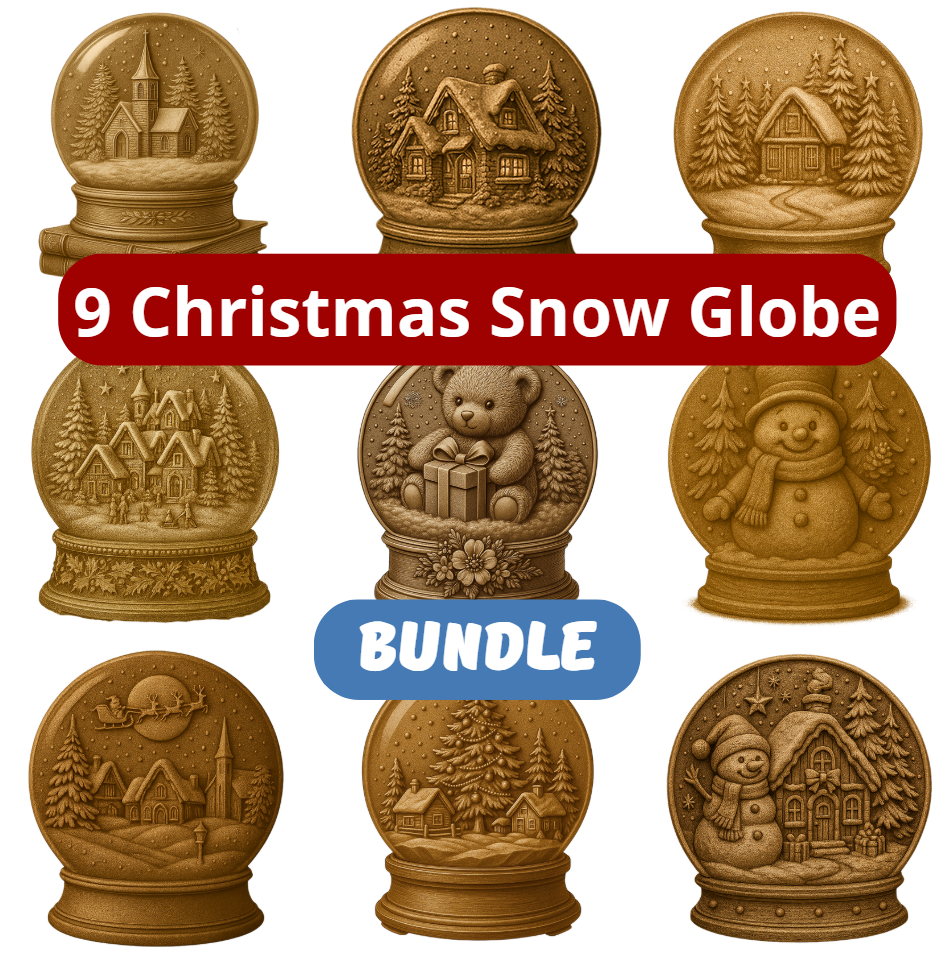 9 Weihnachten Schneekugel Bundle Lasergravur PNG-Datei