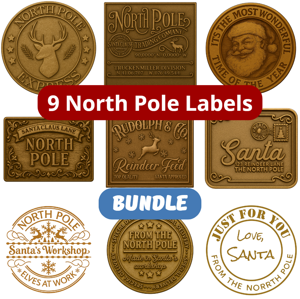 9 Nordpol-Weihnachtsetiketten-Bundle, Lasergravur-PNG-Datei