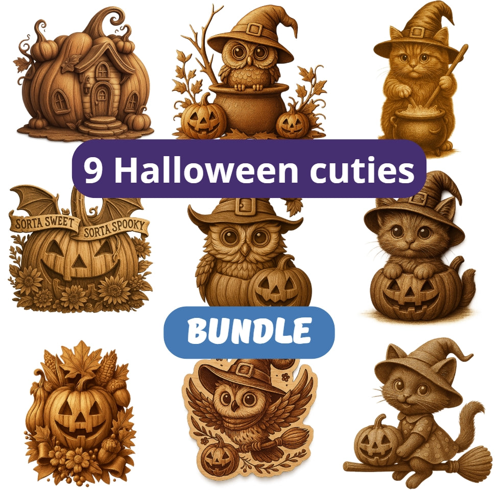 9 Halloween Сuties Bundle Lasergravur PNG-Datei