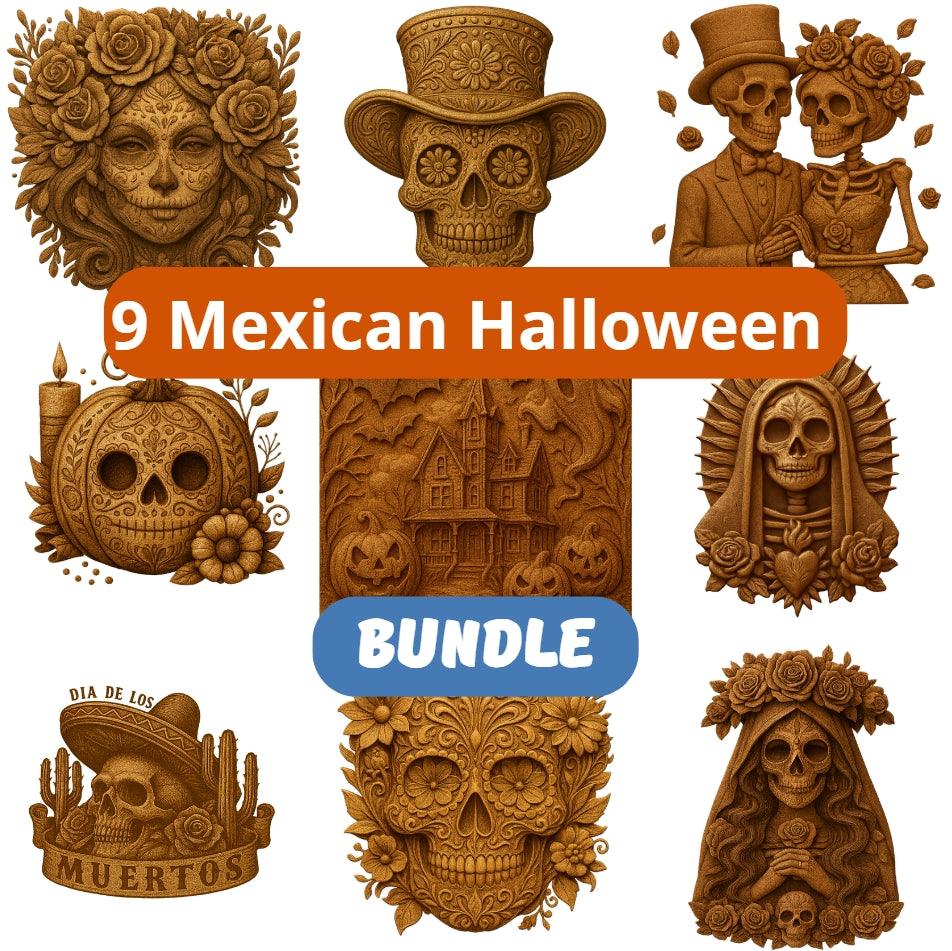 9 mexikanische Halloween-Bundle Lasergravur-PNG-Datei