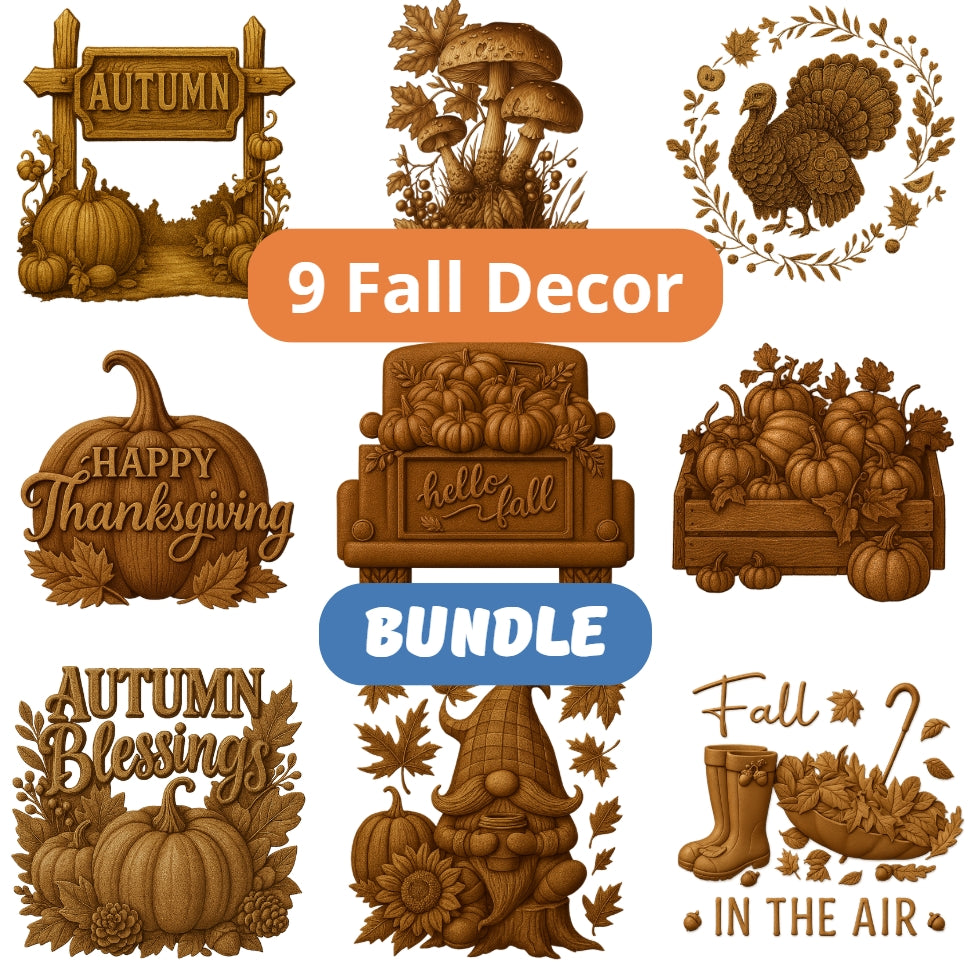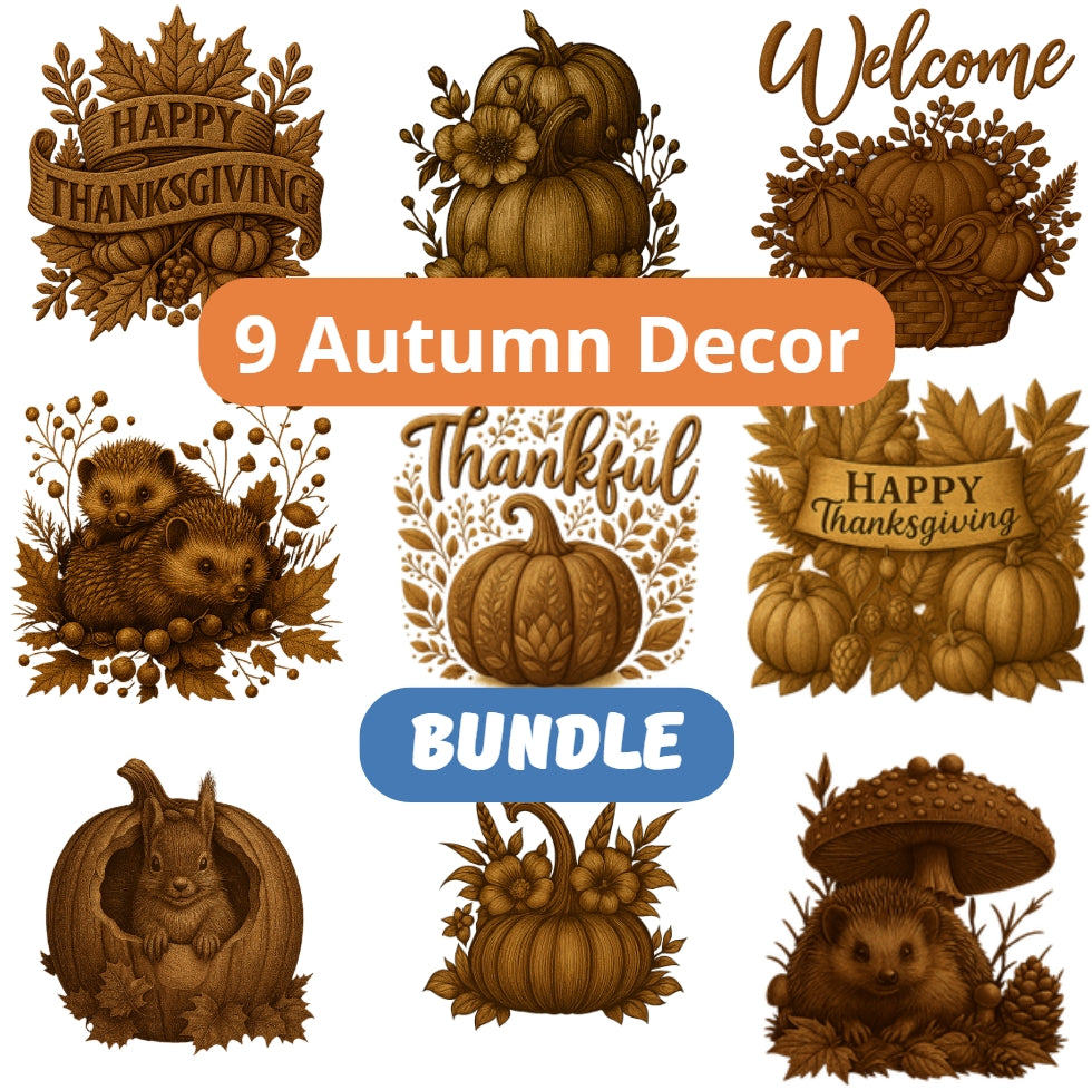 9 Herbst Dekor Bundle Lasergravur PNG-Datei
