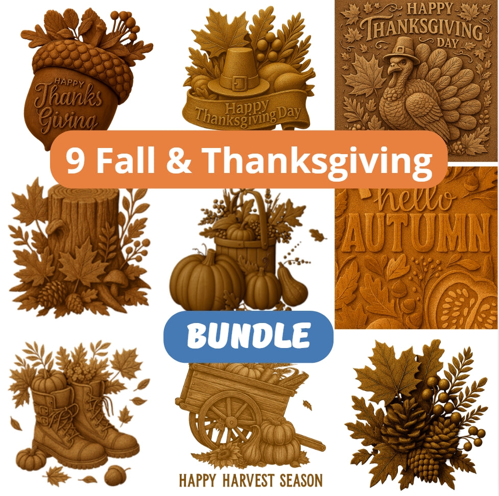 9 Herbst- und Thanksgiving-Bundle-Lasergravur-PNG-Datei
