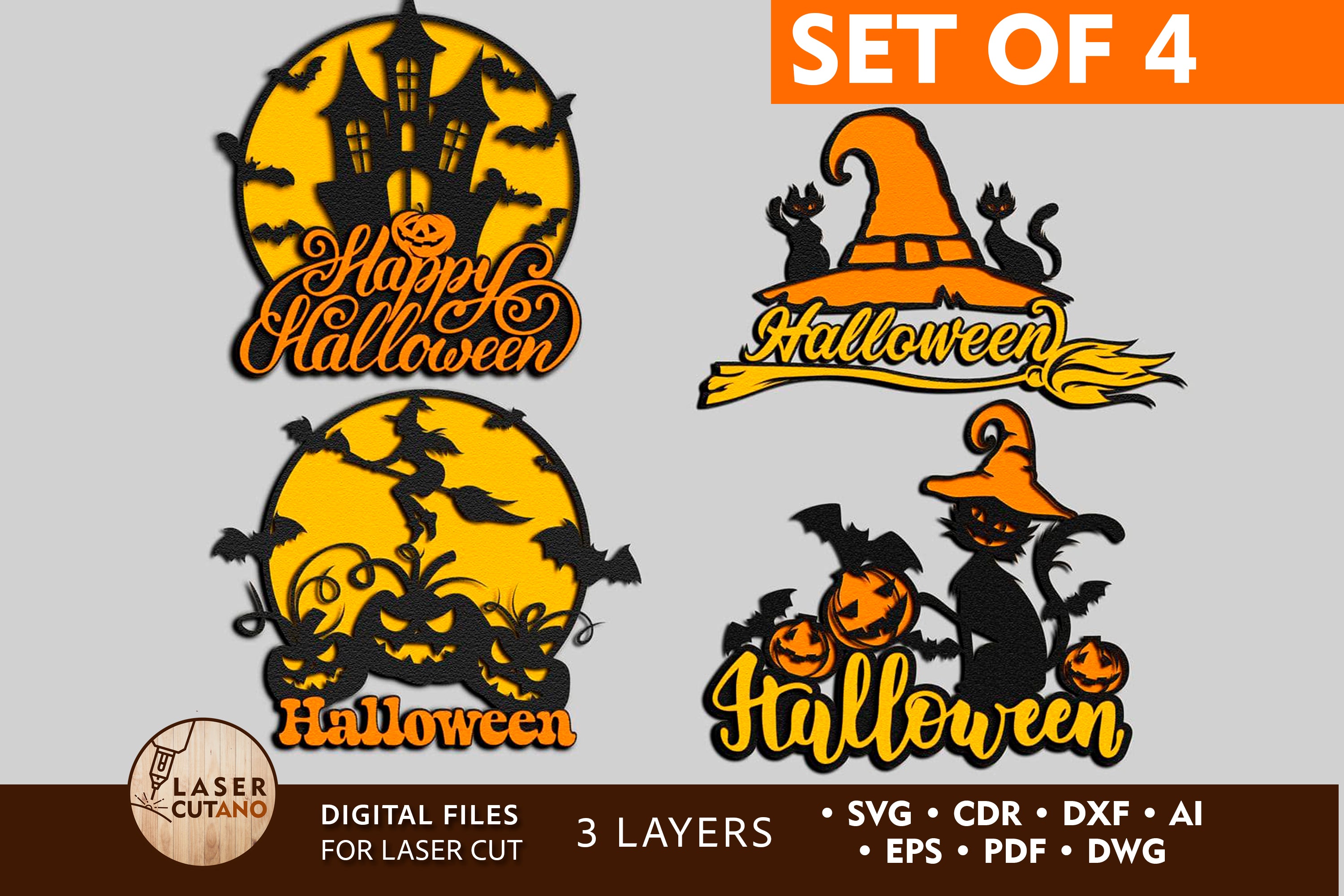 Halloween Wanddekoration 4 Bundle Laser Cut SVG Datei