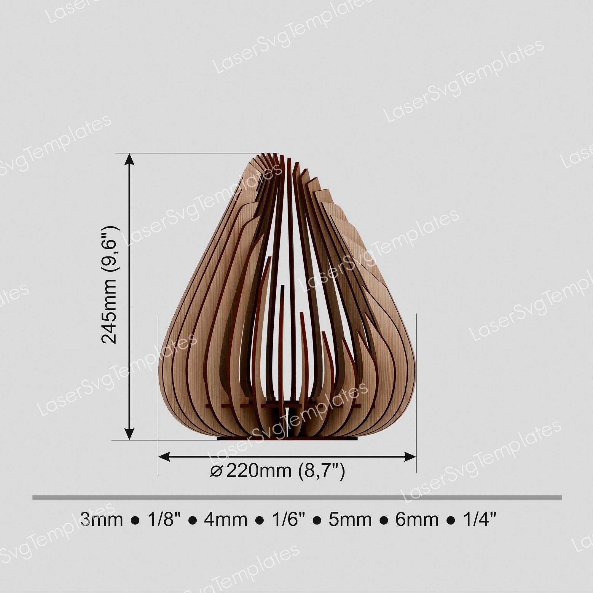 Sie erhalten die Dateien in den Formaten SVG, DXF, AI, EPS, CDR und PDF, die mit den meisten Laserschneidprogrammen kompatibel sind.