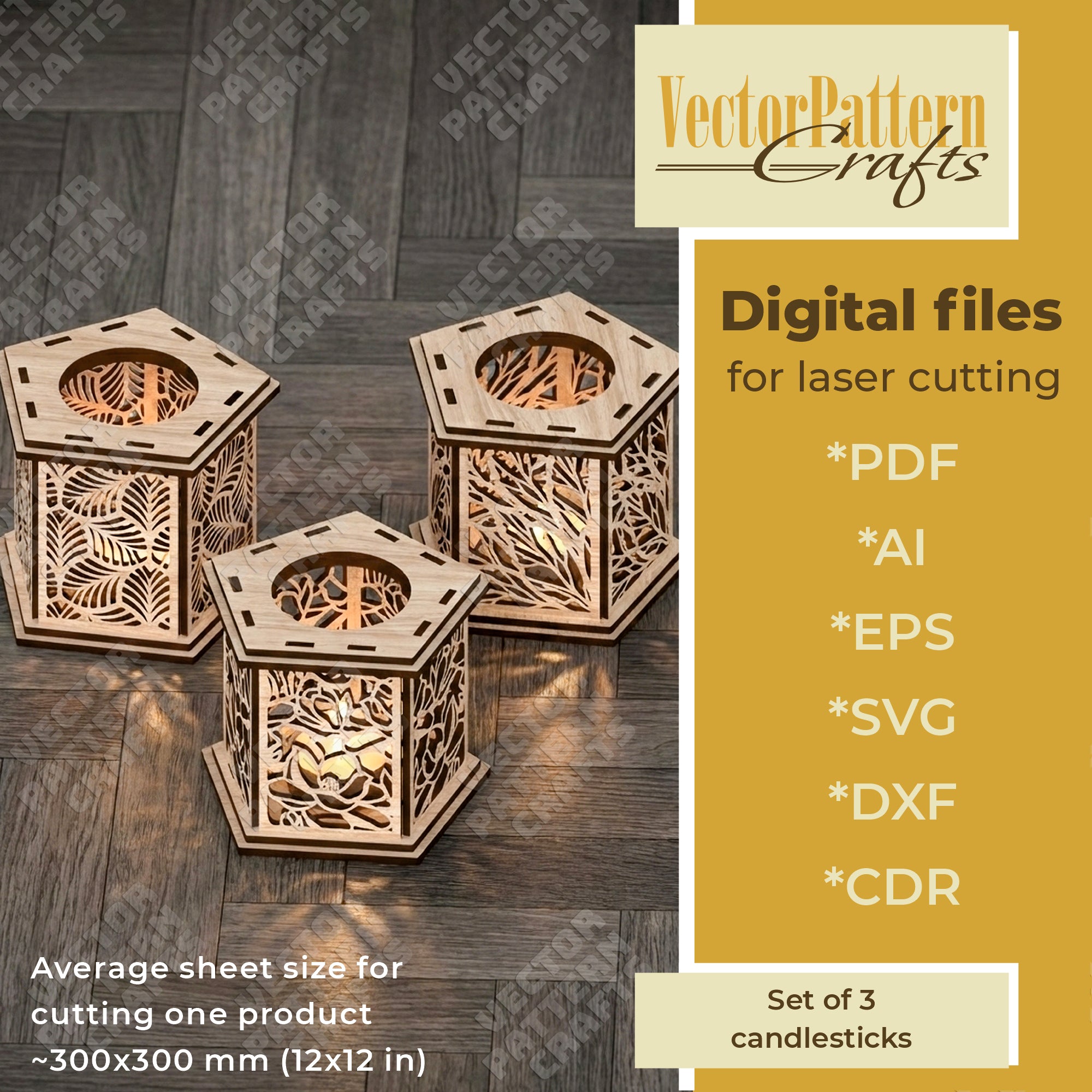 Sie erhalten die Dateien in den Formaten SVG, DXF, AI, EPS, CDR und PDF, die mit den meisten Laserschneidprogrammen kompatibel sind.