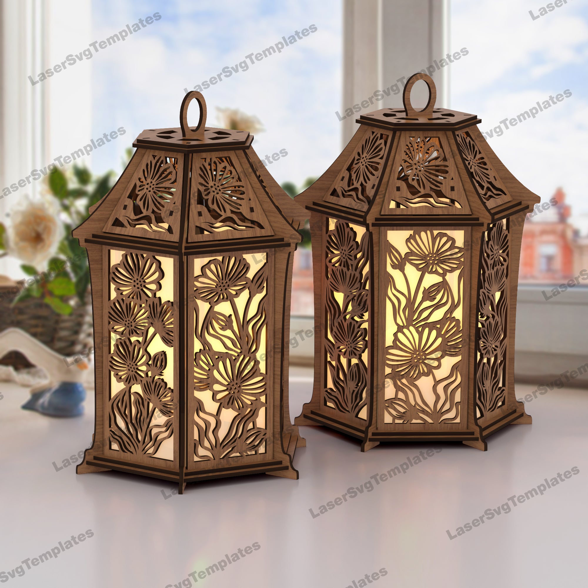 Blumen Nachtlampe Laterne lasergeschnittene SVG-Datei
