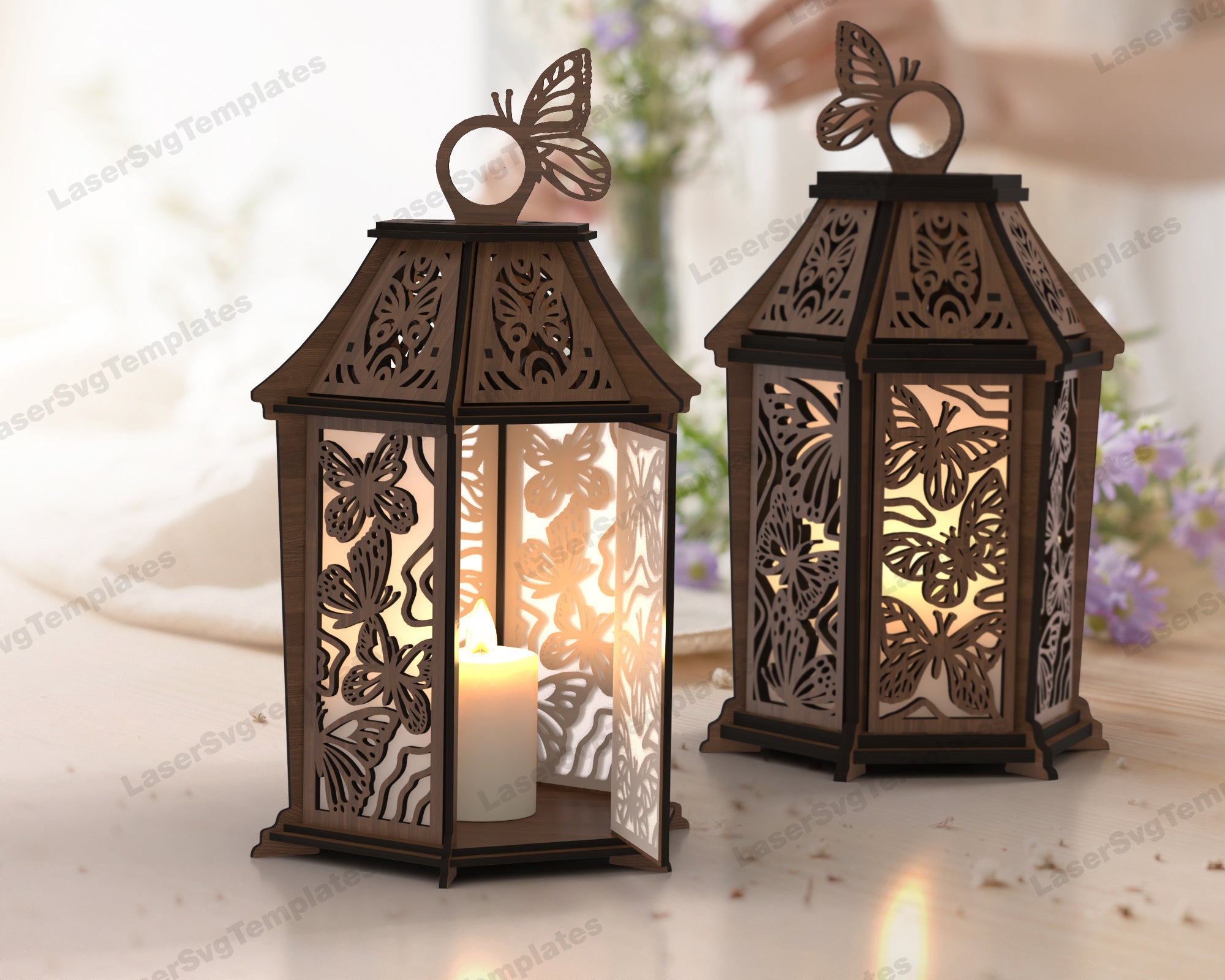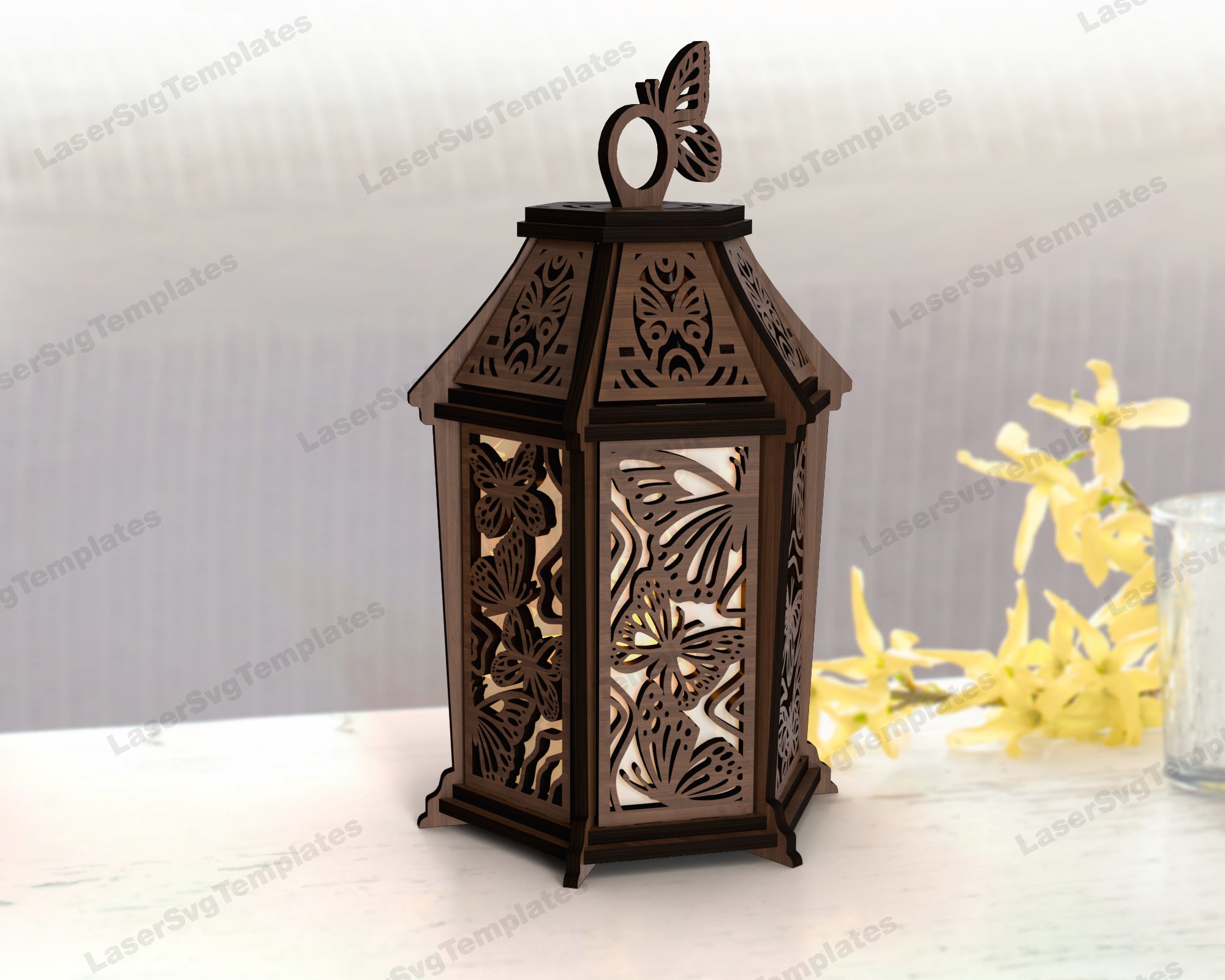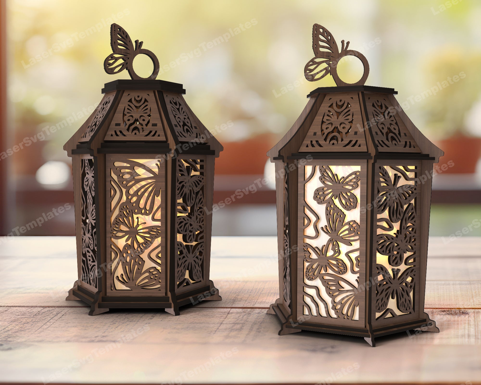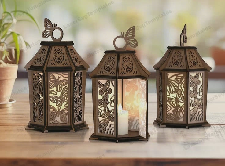 Dekorative hölzerne Schmetterlingslaterne -Laser -SVG -Datei
