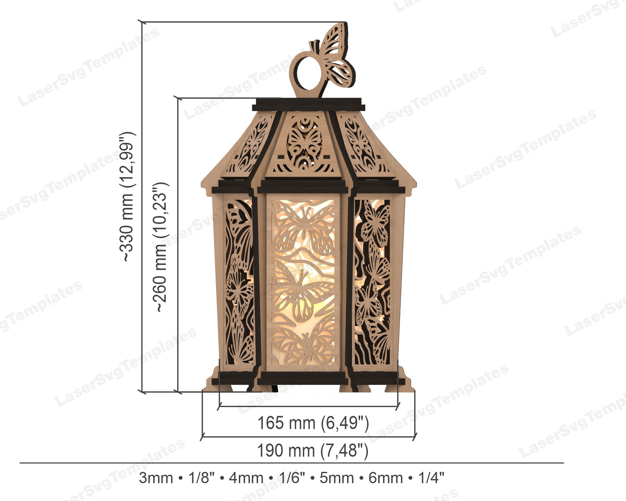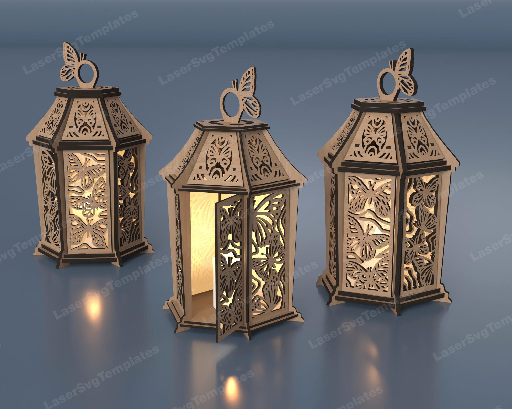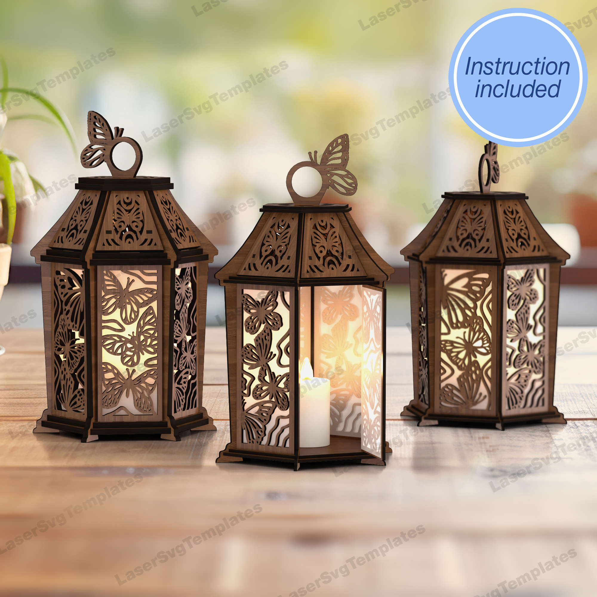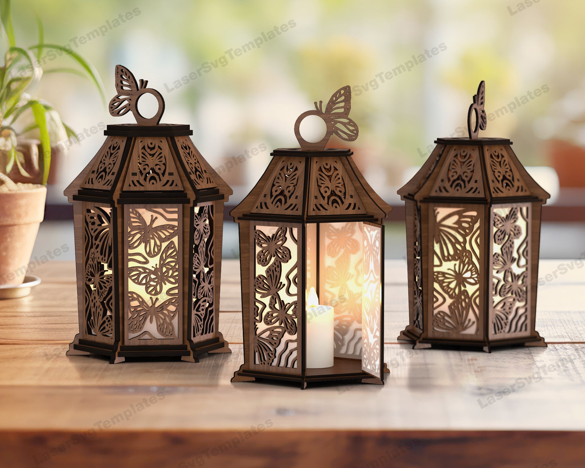 Dekorative hölzerne Schmetterlingslaterne -Laser -SVG -Datei