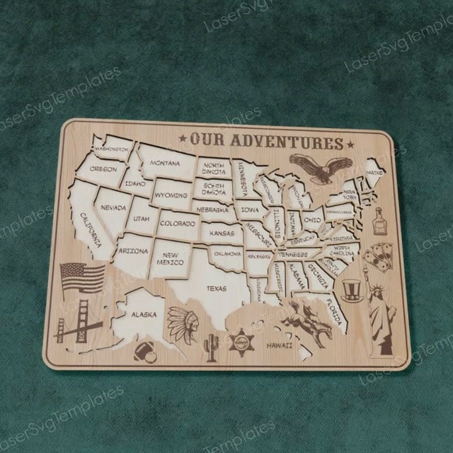 Mehrschichtige United States Travel Map Laser Cut SVG -Datei