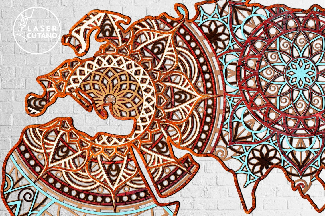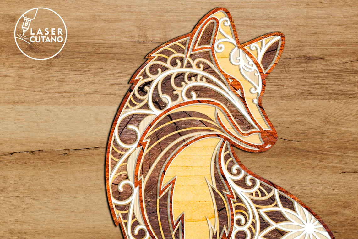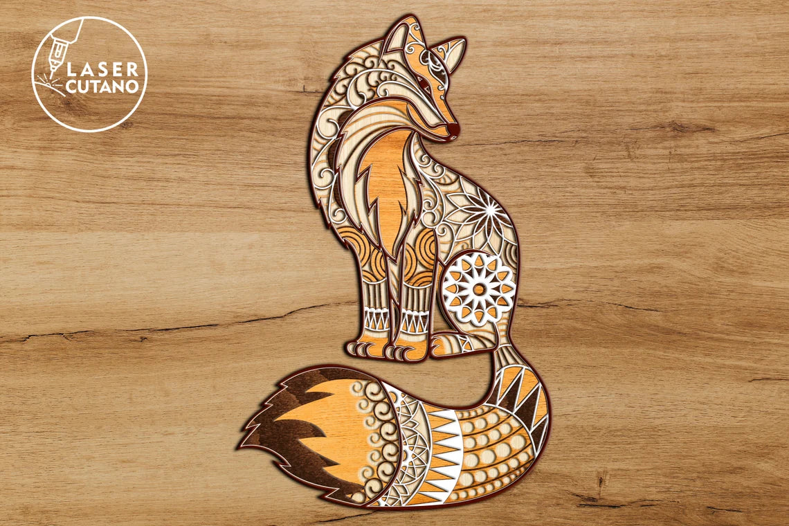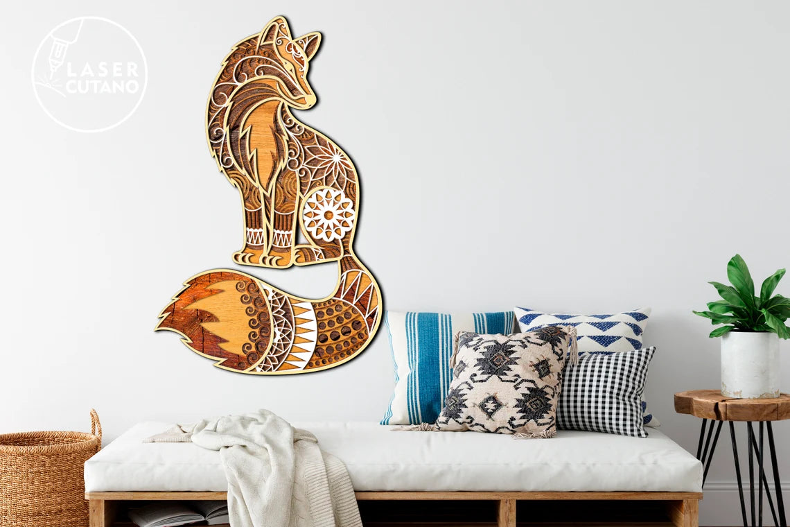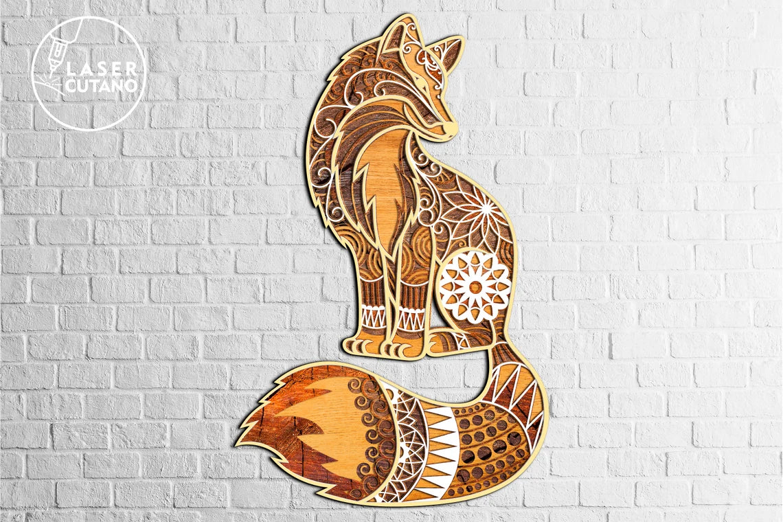 Fuchs Mandala Mehrschichtige Wanddekoration Laser Cut SVG Datei