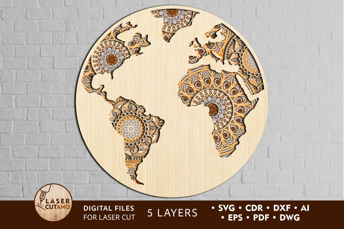 Globus Karte Wanddekoration Laser Cut SVG Datei