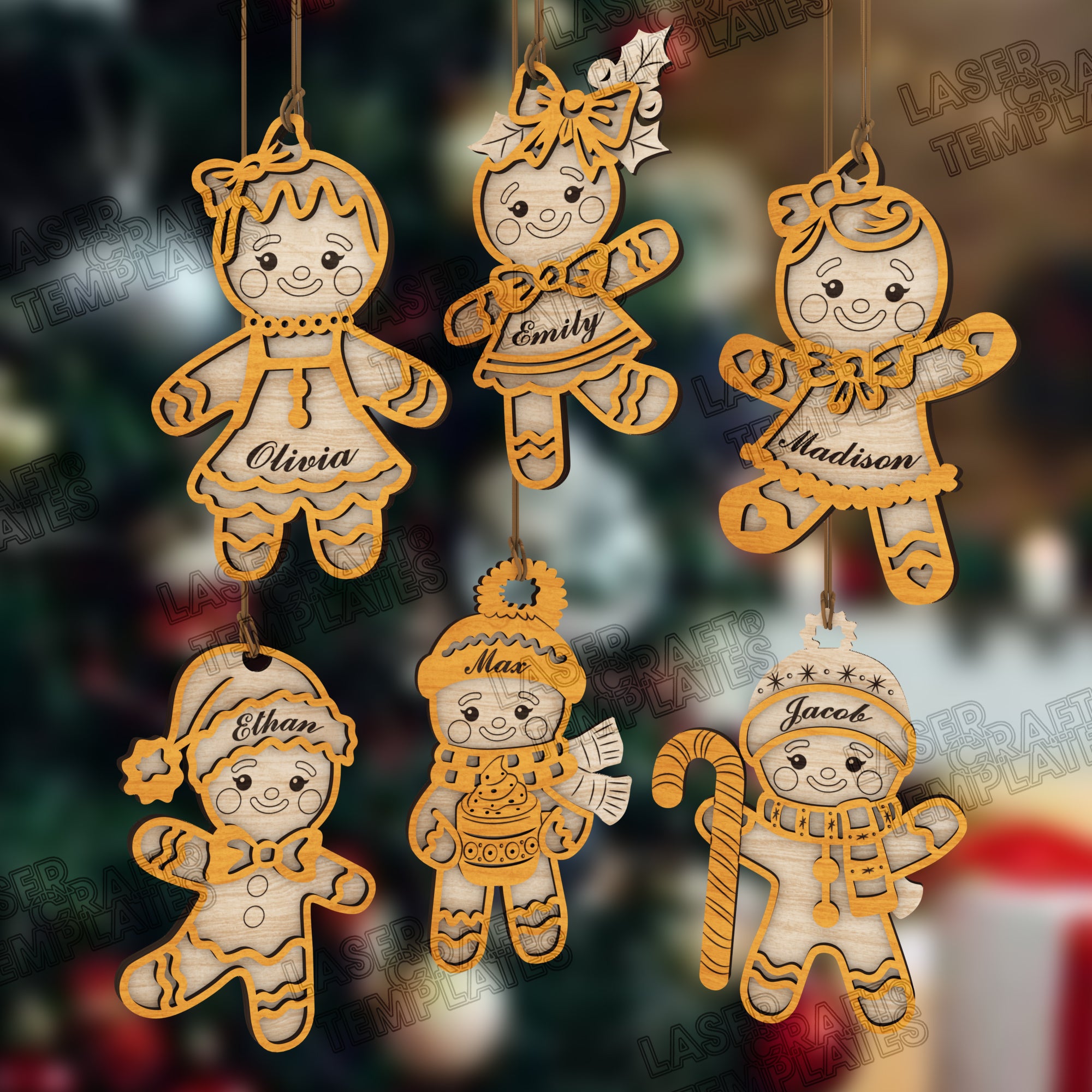 Lebkuchen Weihnachten 6 Ornamente Laser SVG Schneidedatei