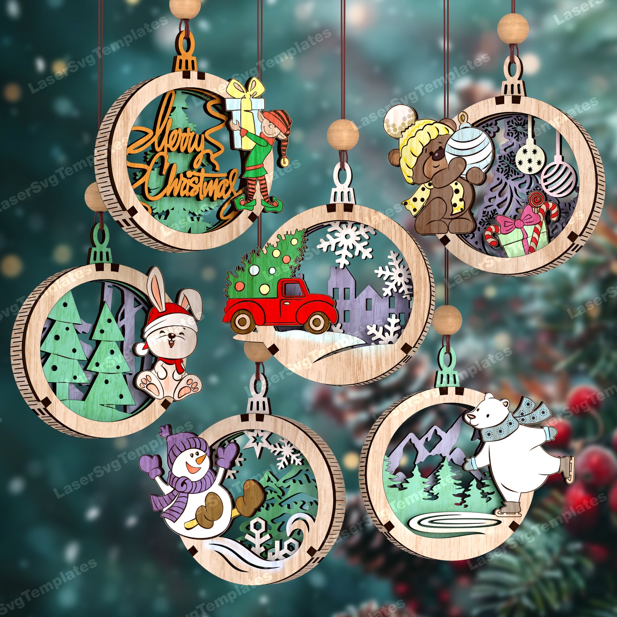 Weihnachtsfiguren 18 Ornamente lasergeschnittene SVG-Datei