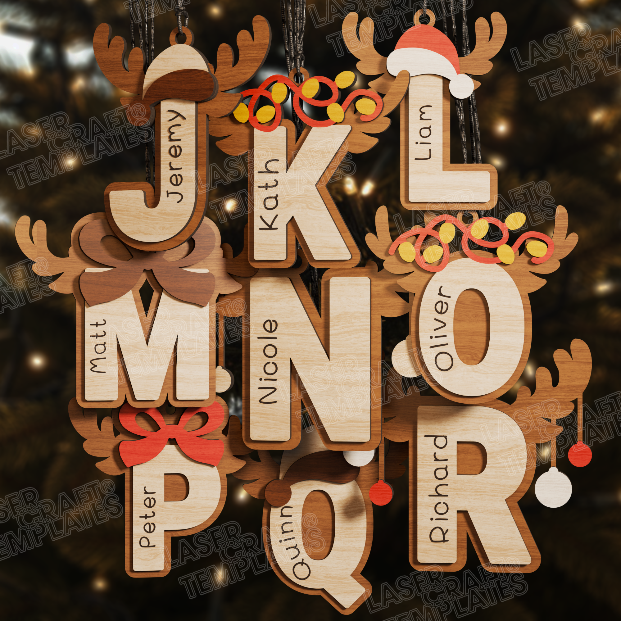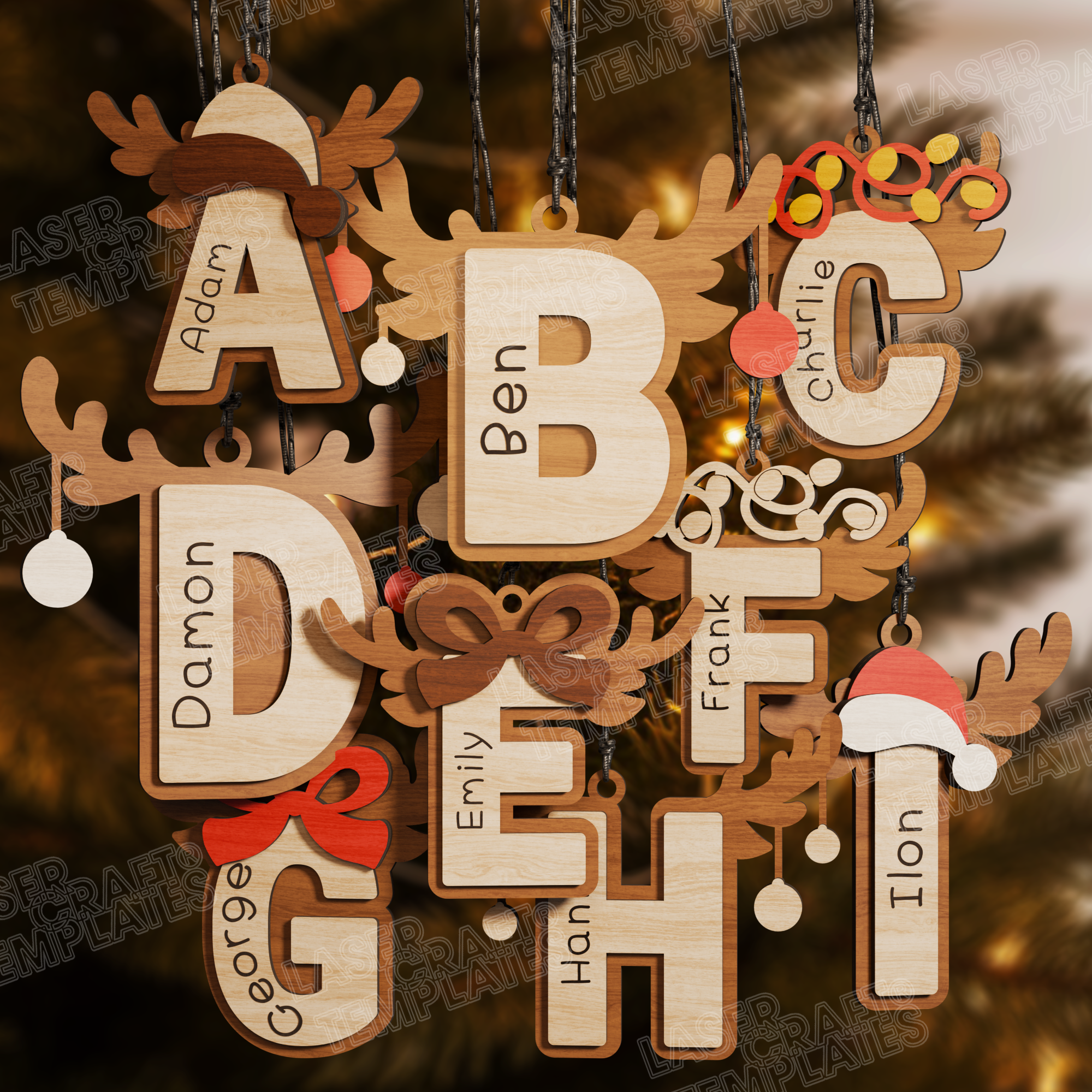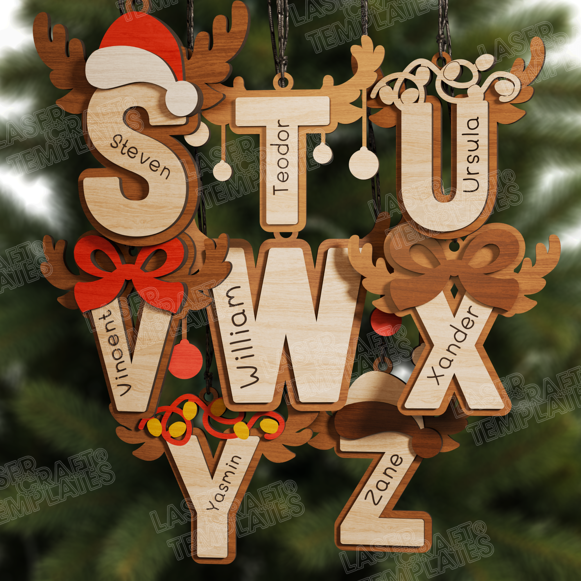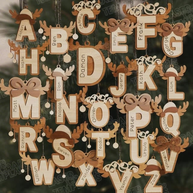 Weihnachten Alphabet 26 Ornamente Laser SVG Schneidedatei