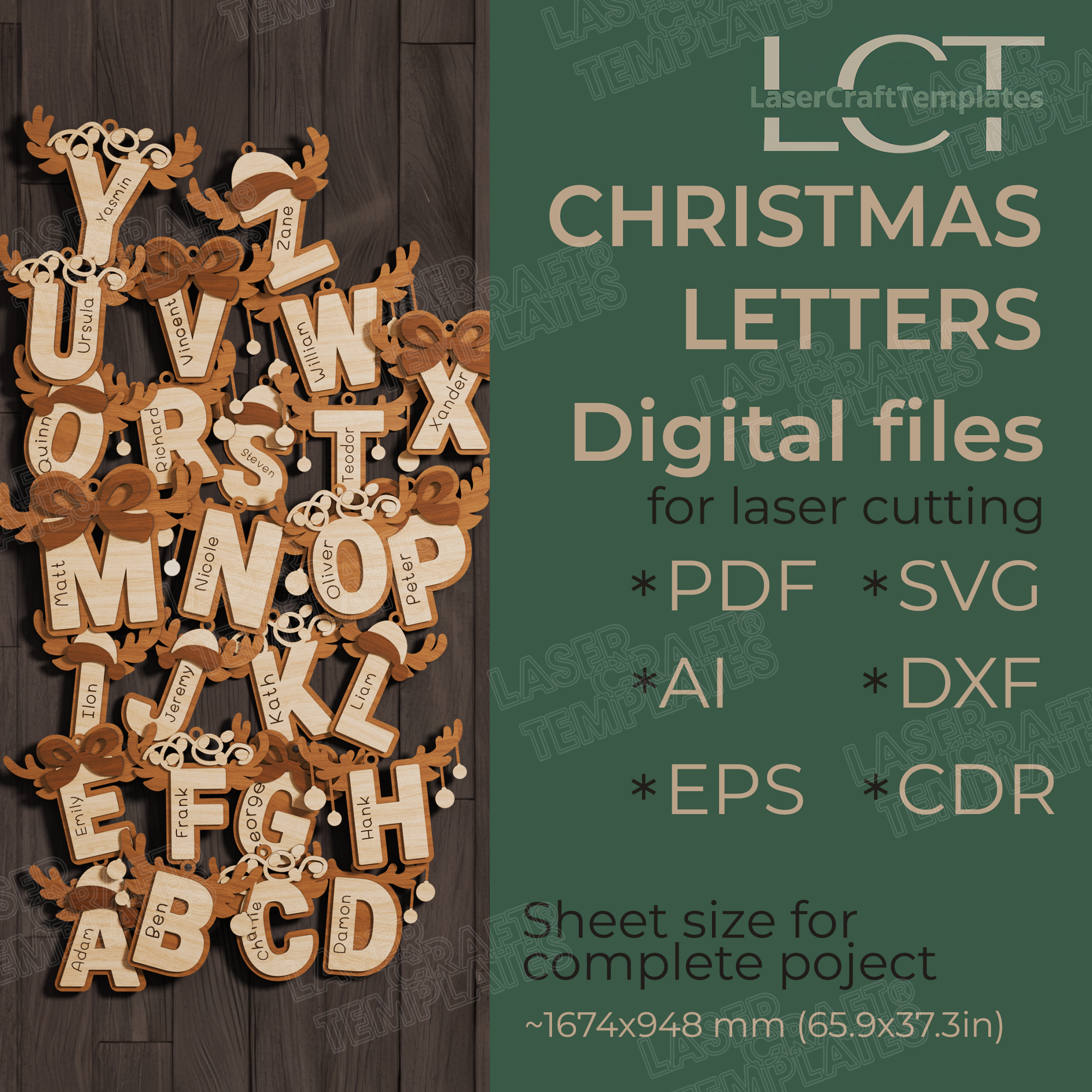 Sie erhalten die Dateien in den Formaten SVG, DXF, AI, EPS, CDR und PDF, die mit den meisten Laserschneidprogrammen kompatibel sind.