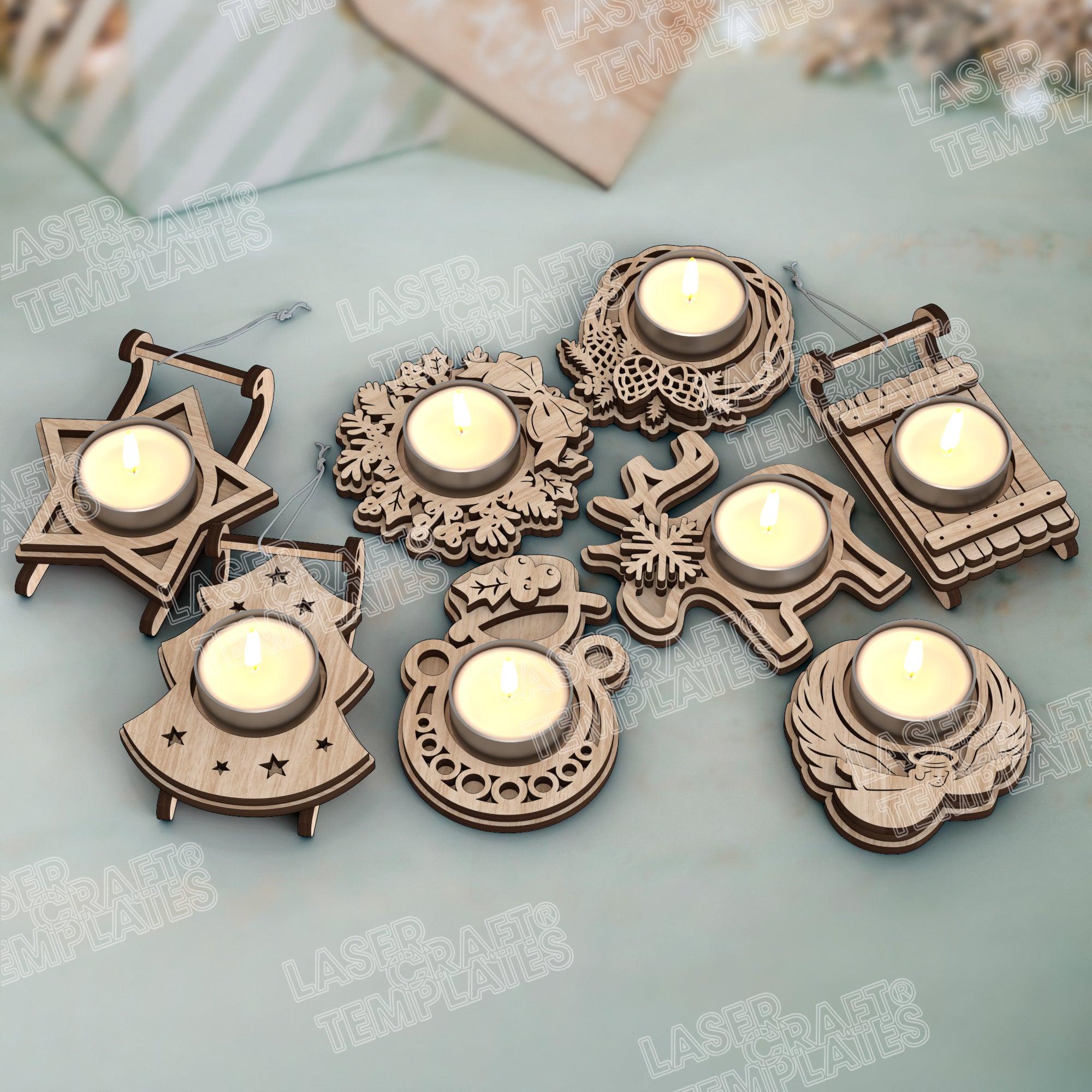 Weihnachtskerzenhalter 8 Bündel lasergeschnittene SVG-Datei