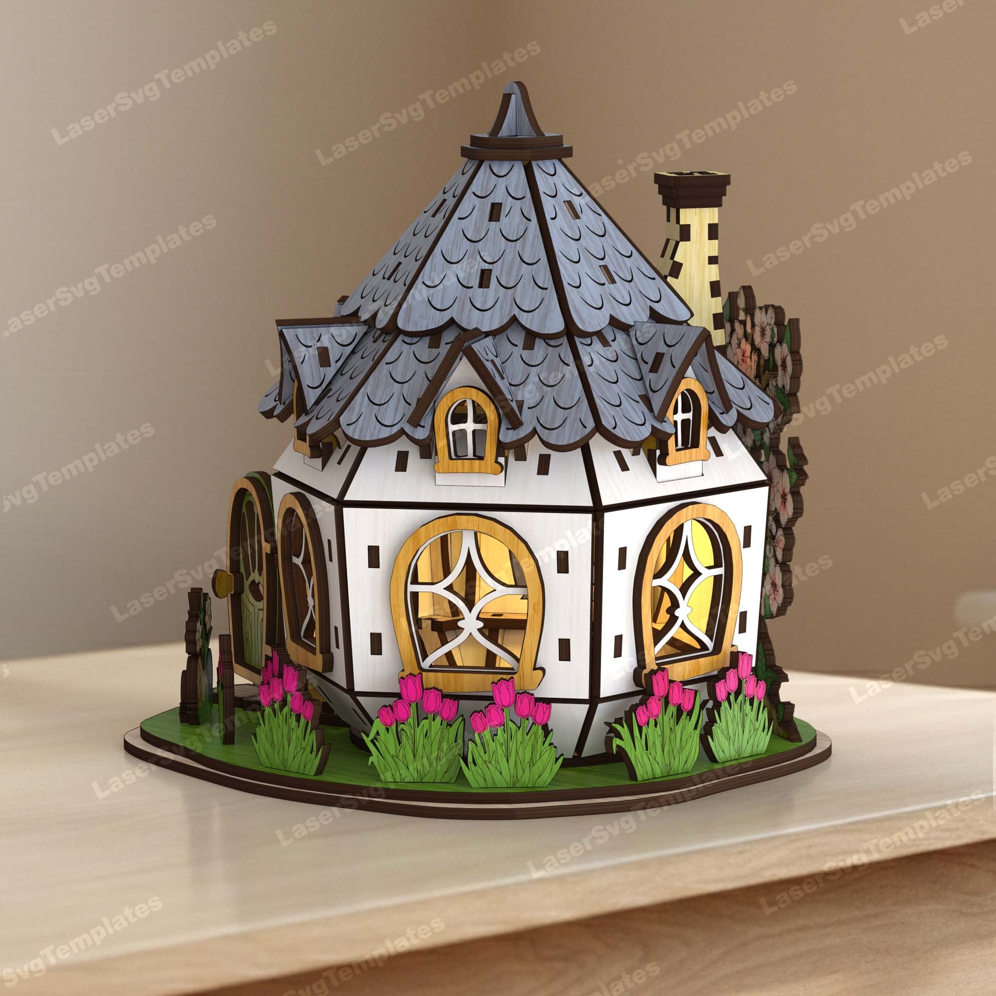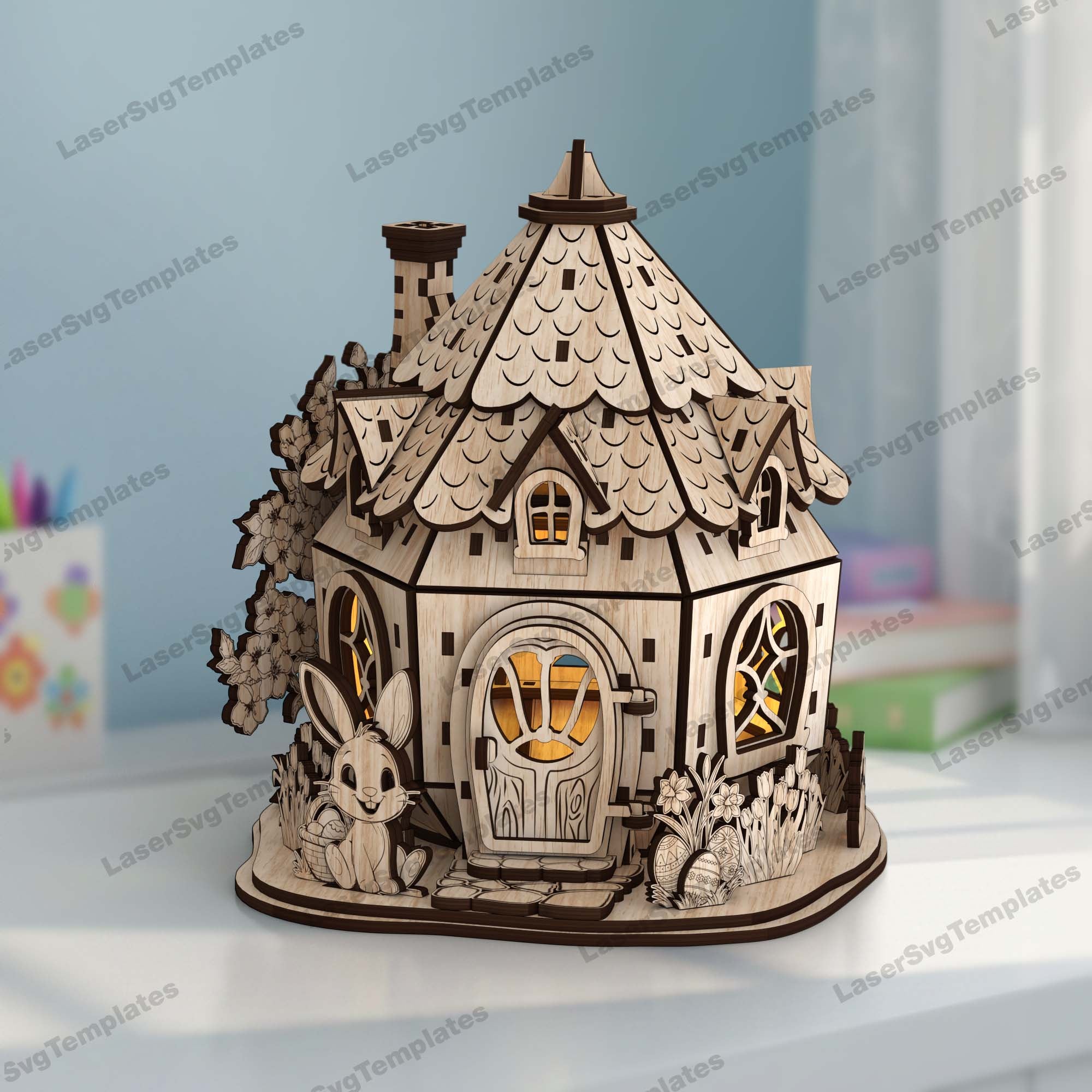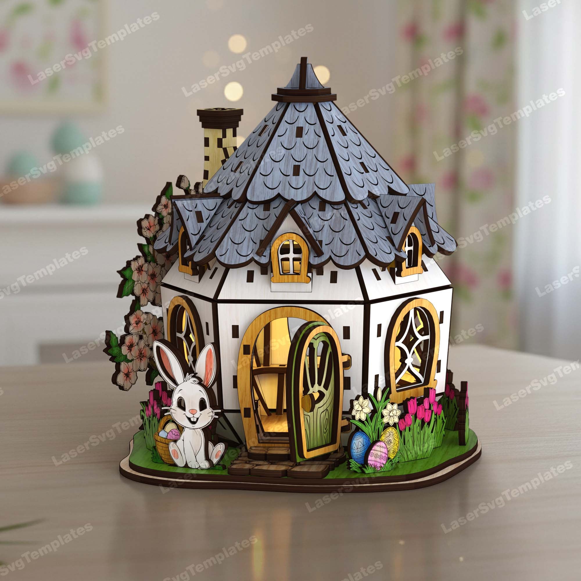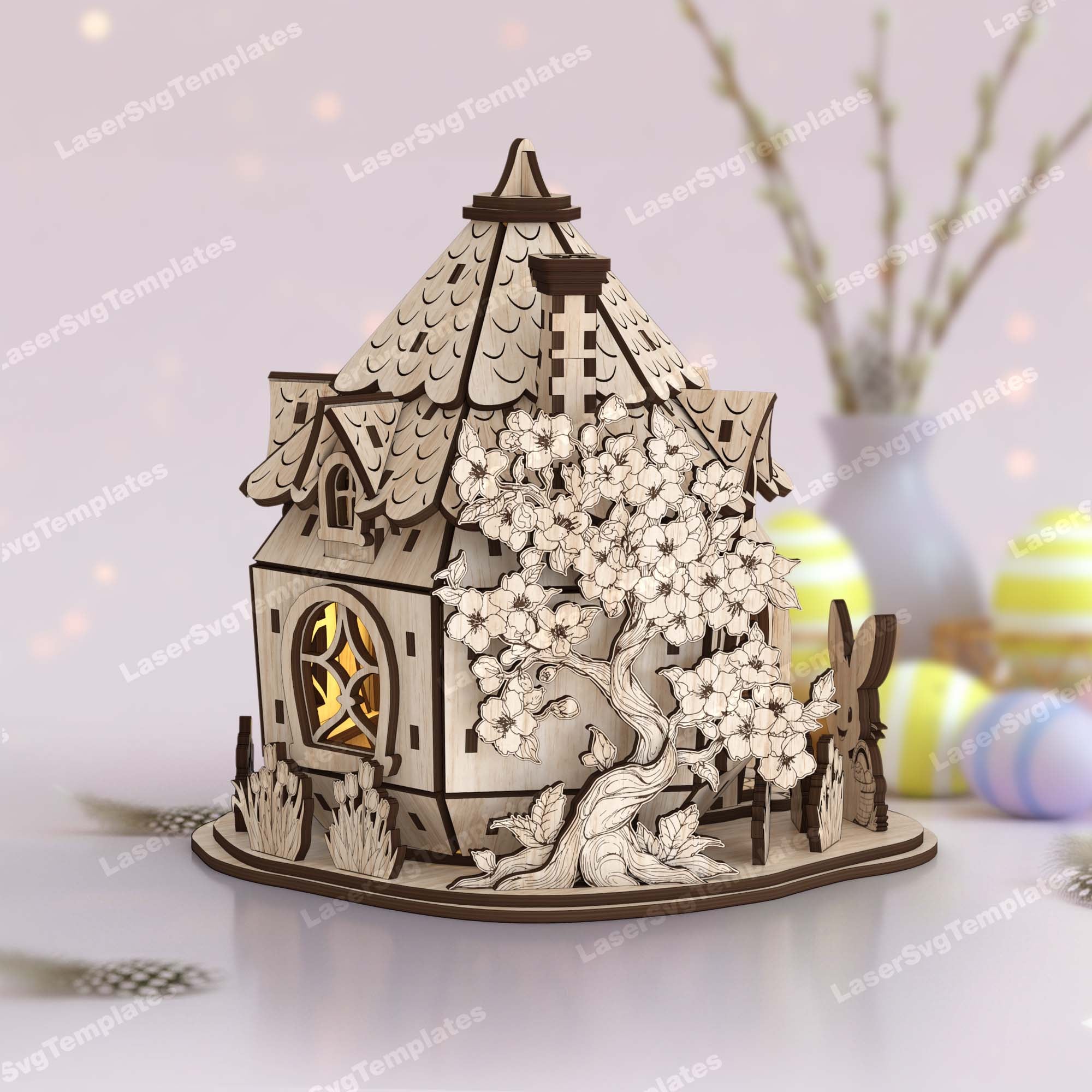 Lasergeschnittene Osterhasen-Haus-Kerzenhalter-Svg-Datei