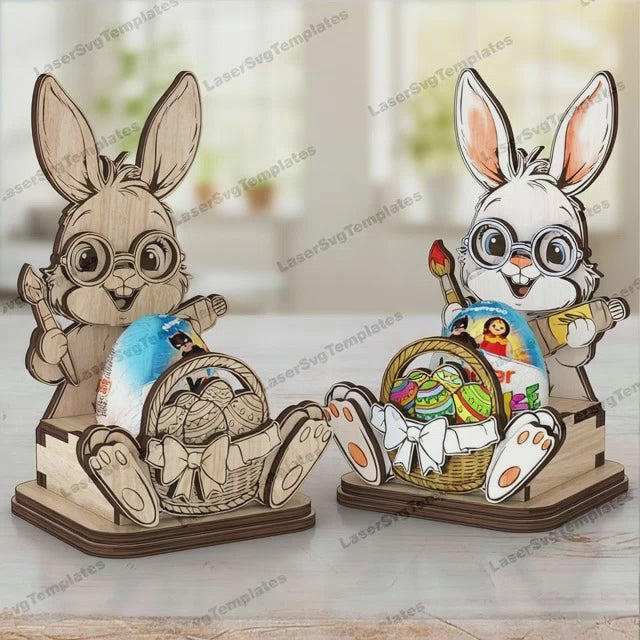 Lasergeschnittene Osterhasen-Haus-Kerzenhalter-Svg-Datei
