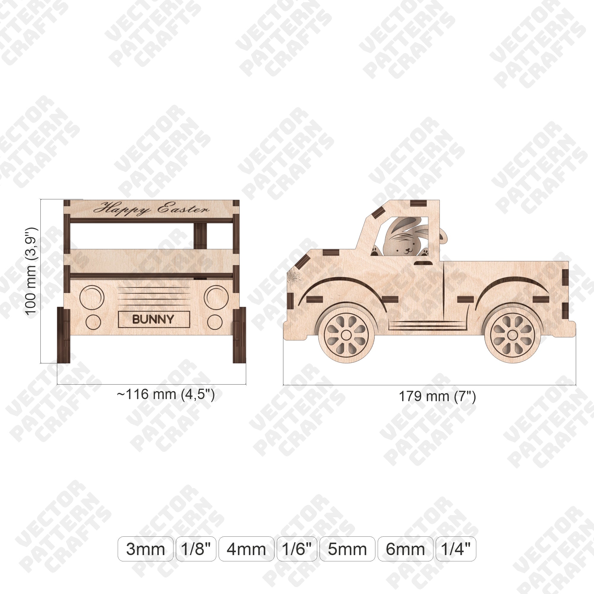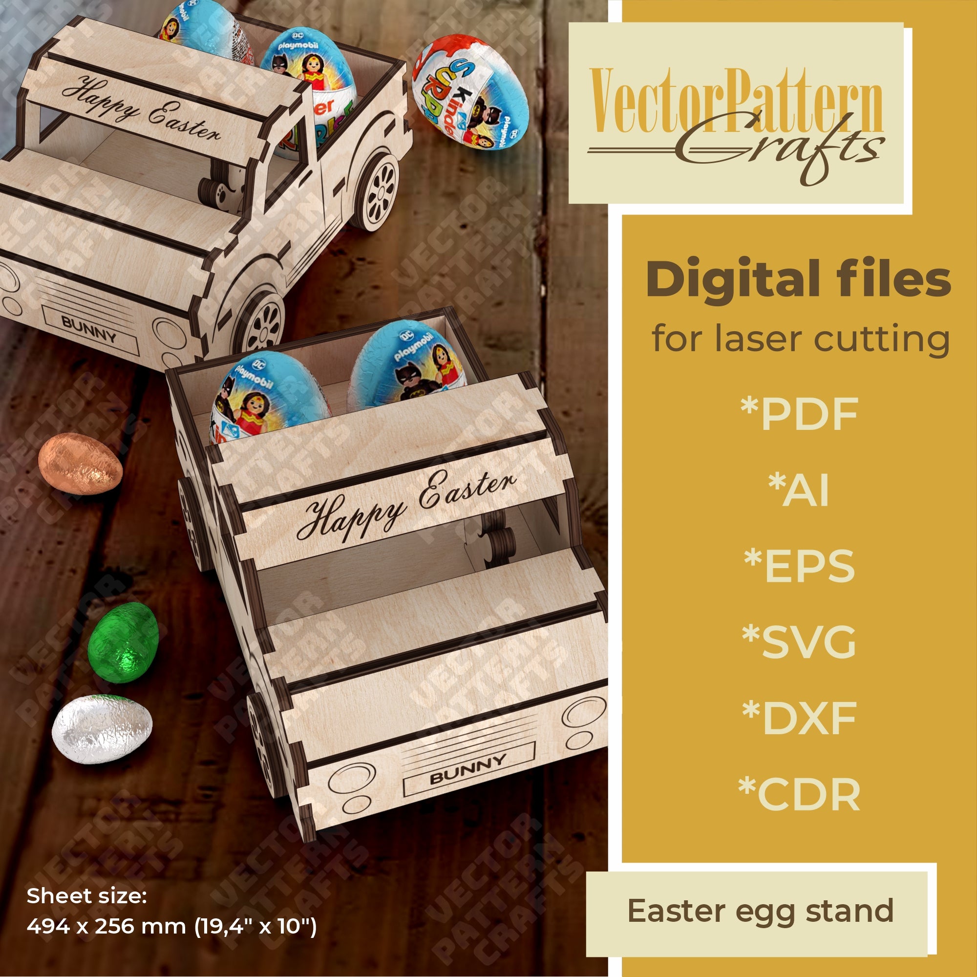 Sie erhalten die Dateien in den Formaten SVG, DXF, AI, EPS, CDR und PDF, die mit den meisten Laserschneidprogrammen kompatibel sind.