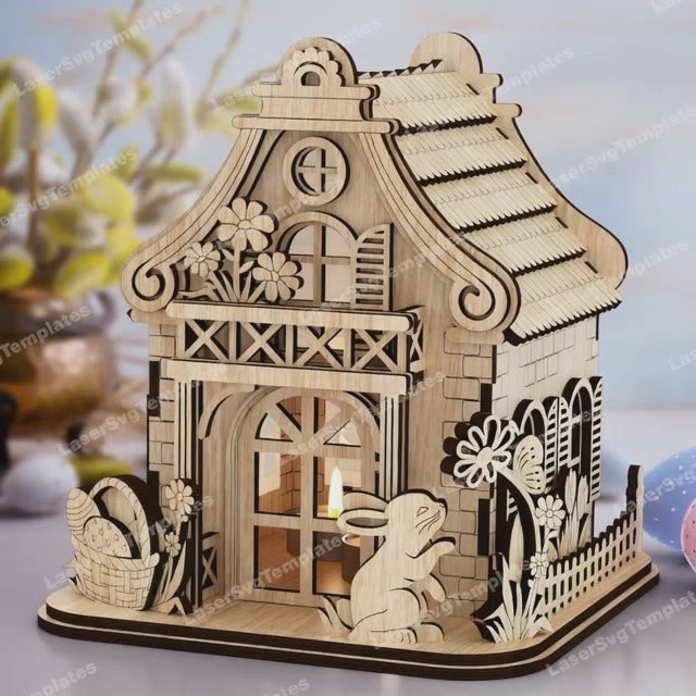 Osterhase Haus Kerzenhalter lasergeschnittene SVG-Datei