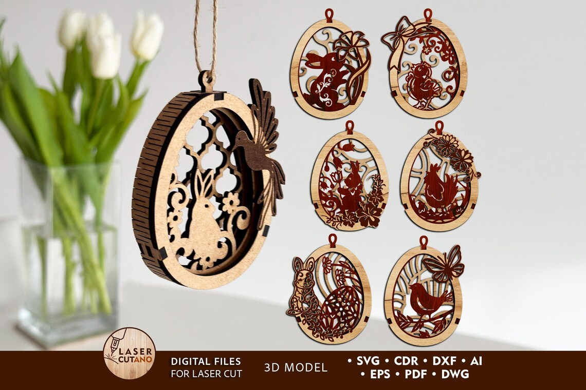 Sie erhalten die Dateien in den Formaten SVG, DXF, AI, EPS, CDR und PDF, die mit den meisten Laserschneidprogrammen kompatibel sind.