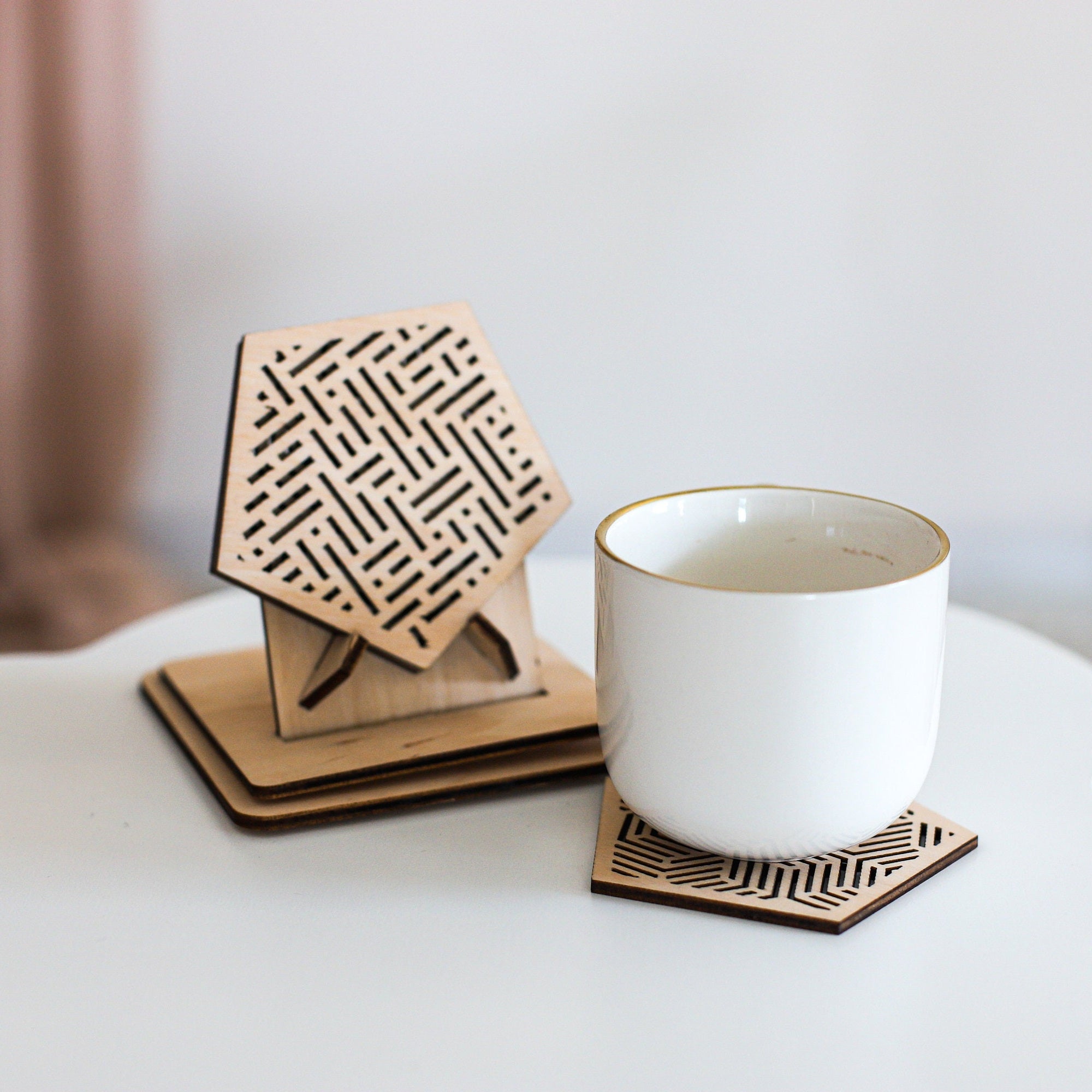Geometrische Untersetzer, die mit Halter -Laser -Cut -SVG -Datei eingestellt sind
