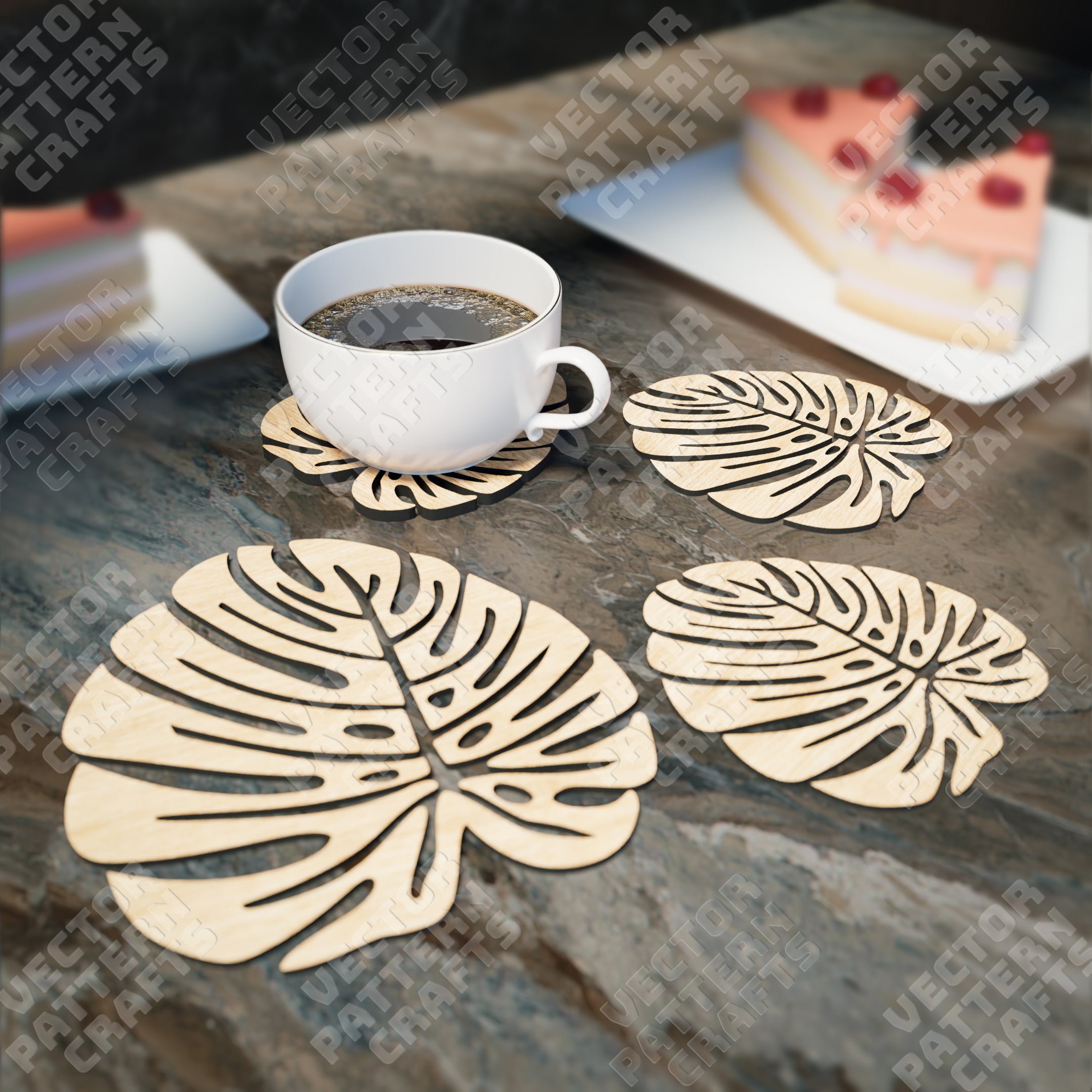 Laser cut monstera coasters set svg template
