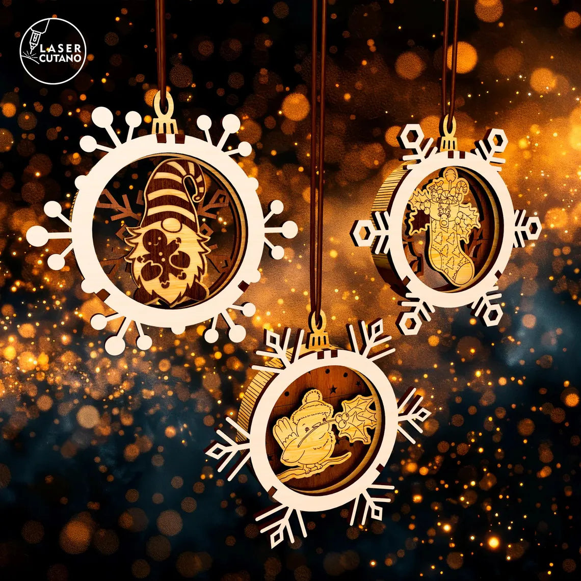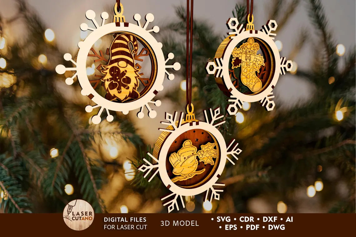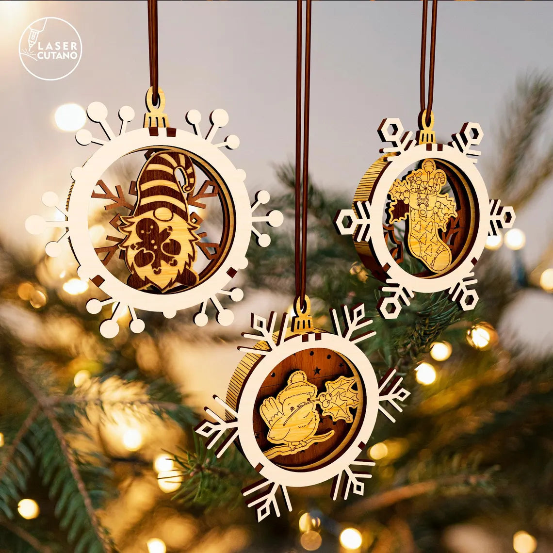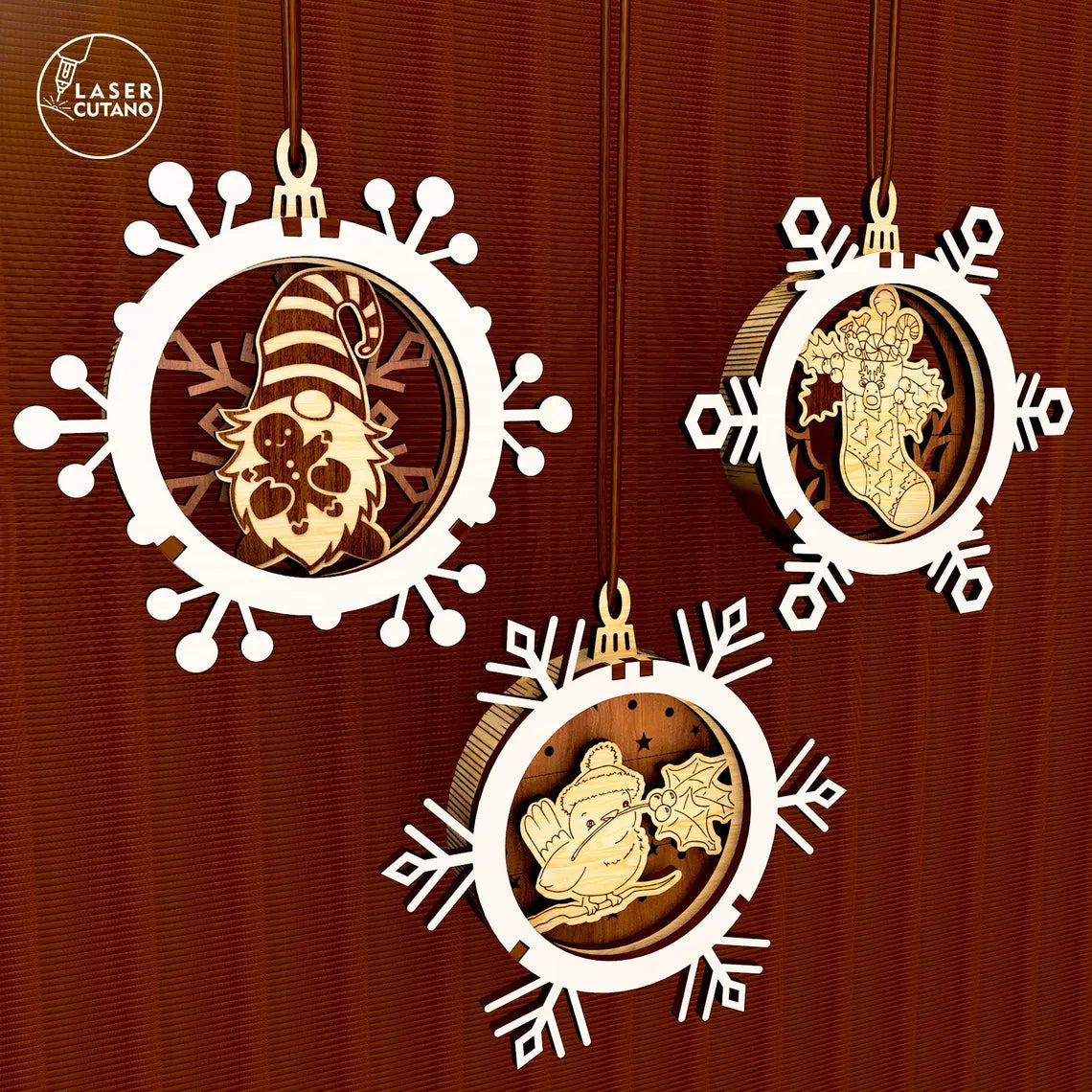 3D Weihnachtsornamente 3 Bundle Laser Cut SVG Datei
