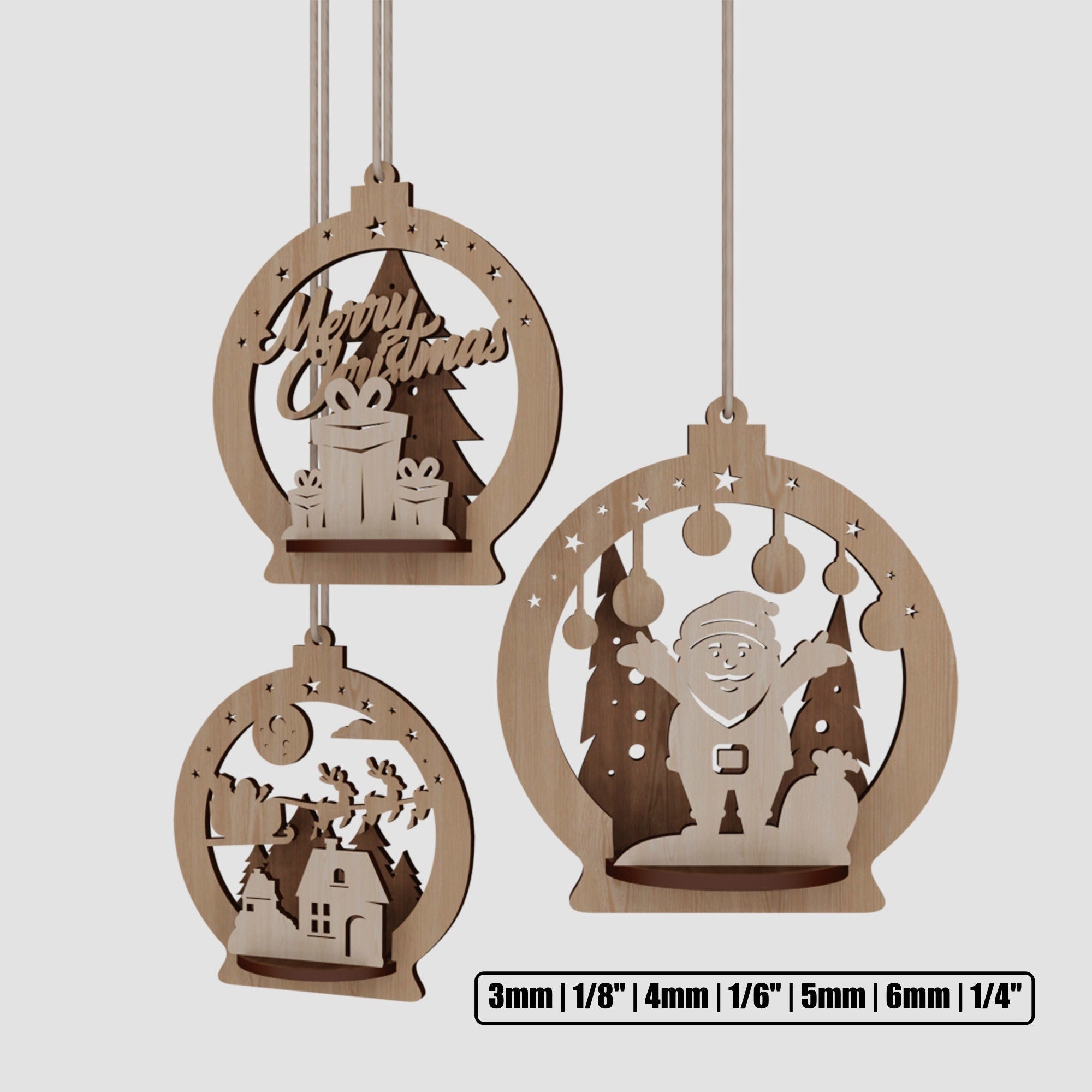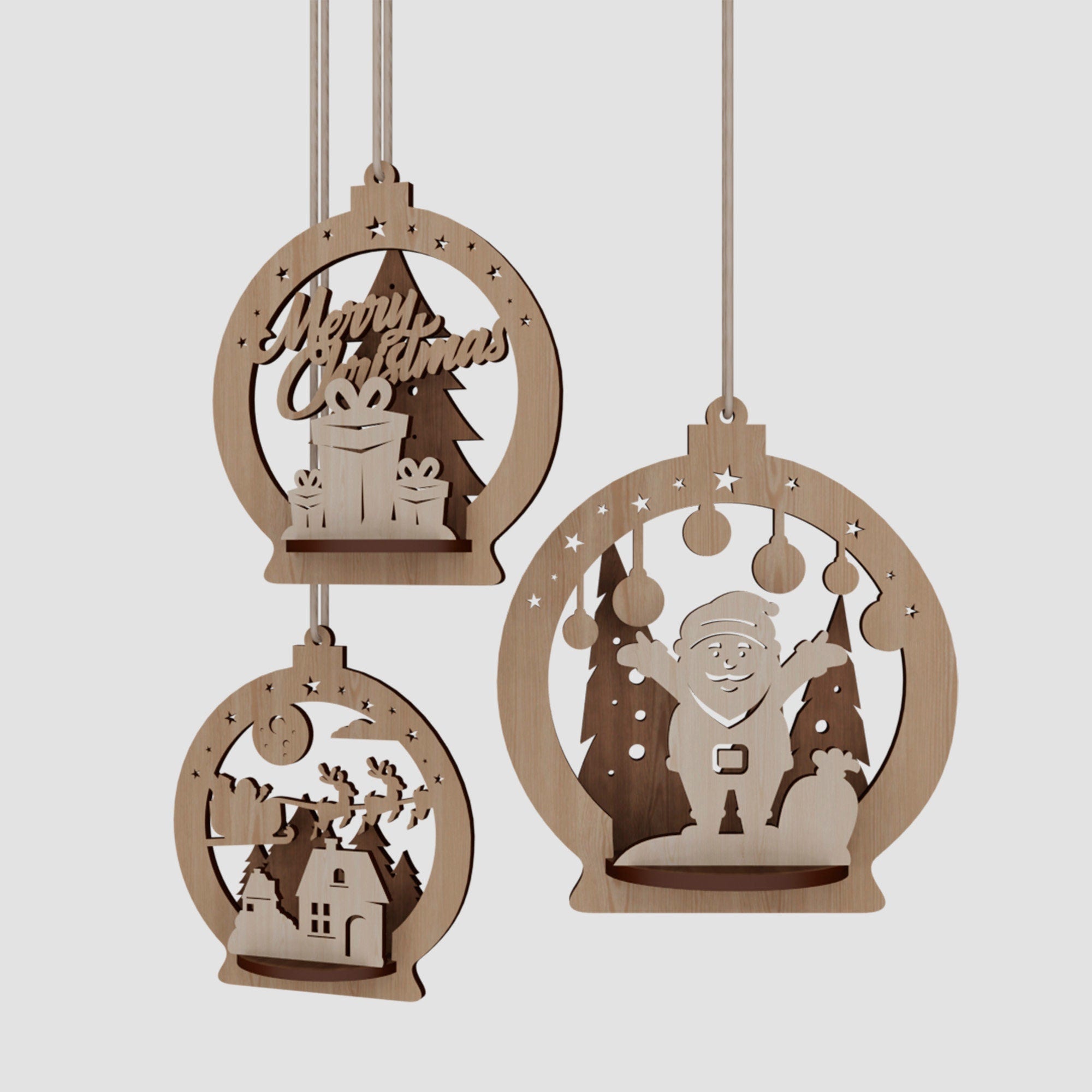 Hölzerne 3D -Weihnachtskugel -Bündel Laser -Schnitt -SVG -Datei