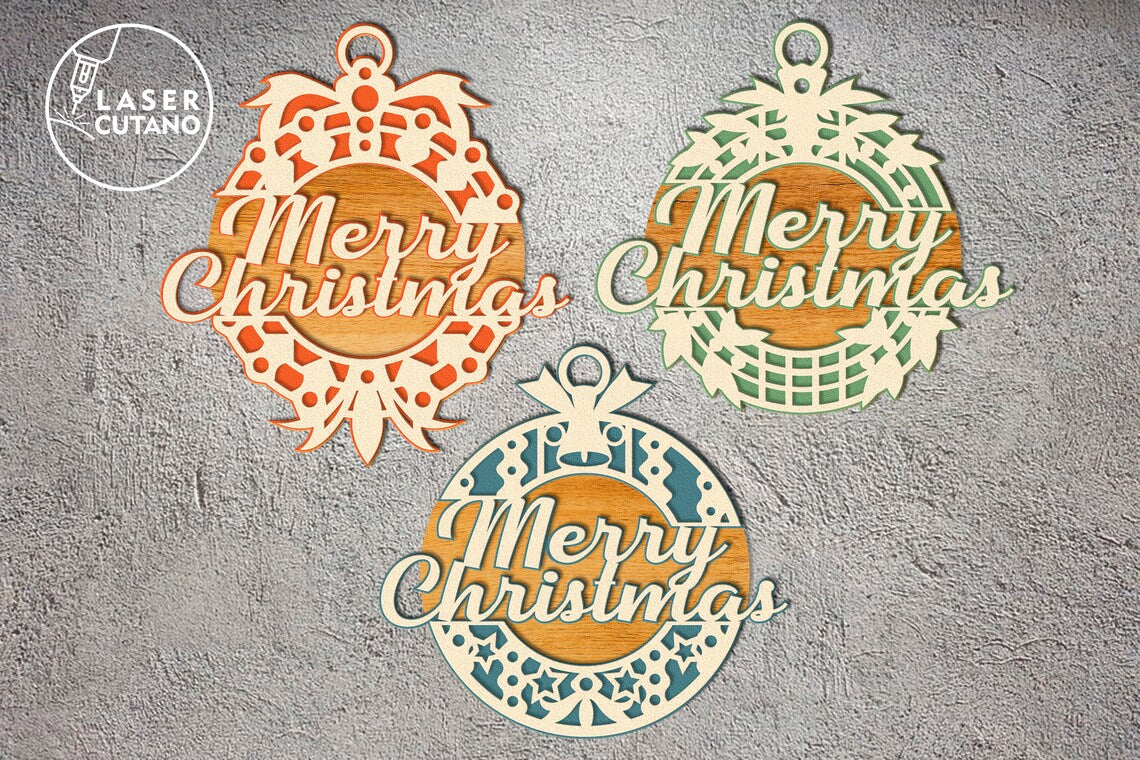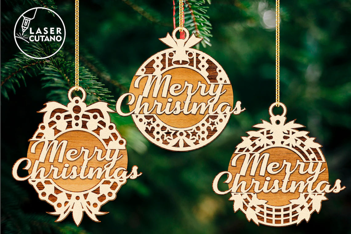 Lasergeschnittene 3D-Weihnachtskugel-Ornamente, 3er-Set, SVG-Datei