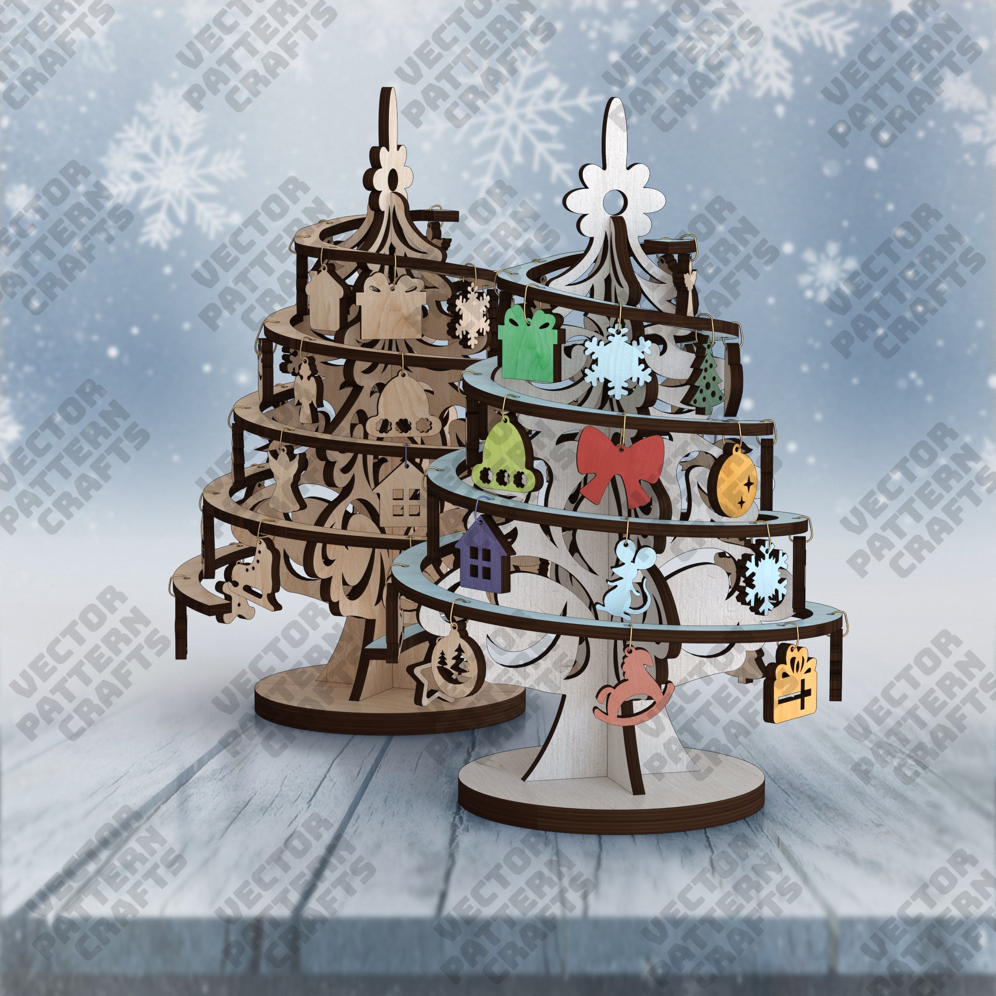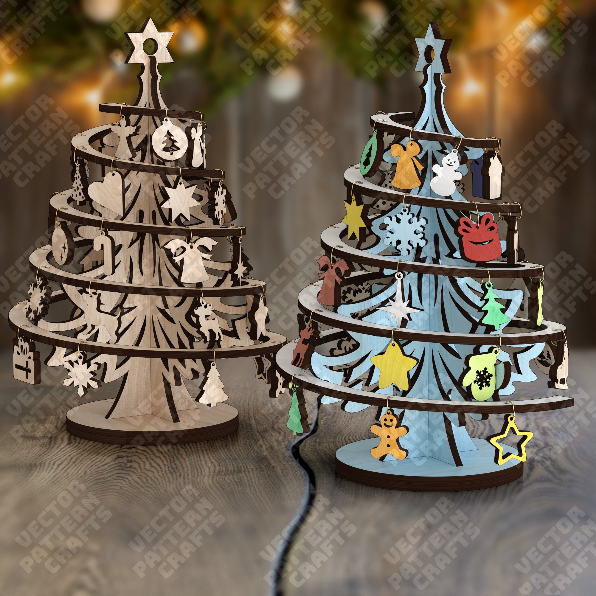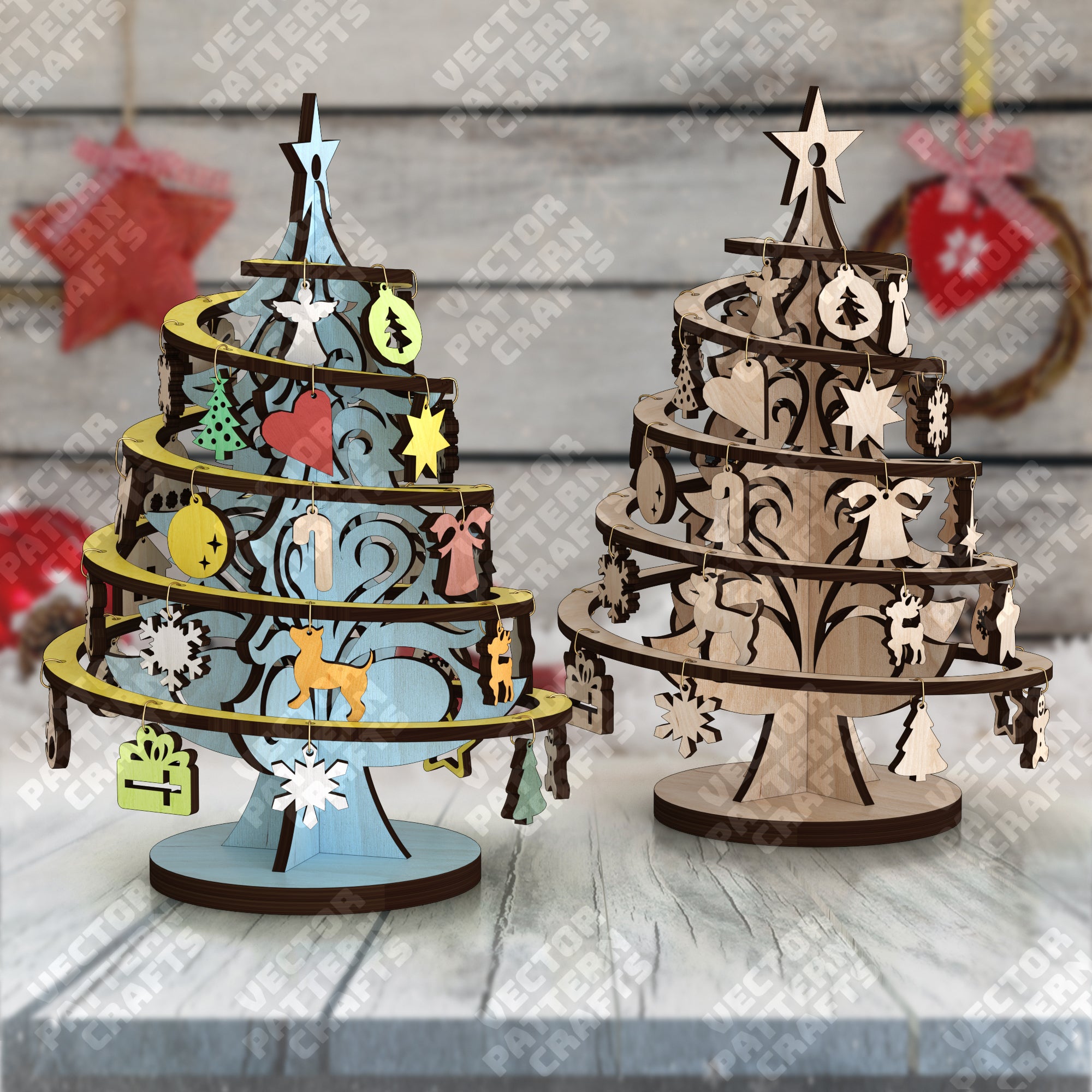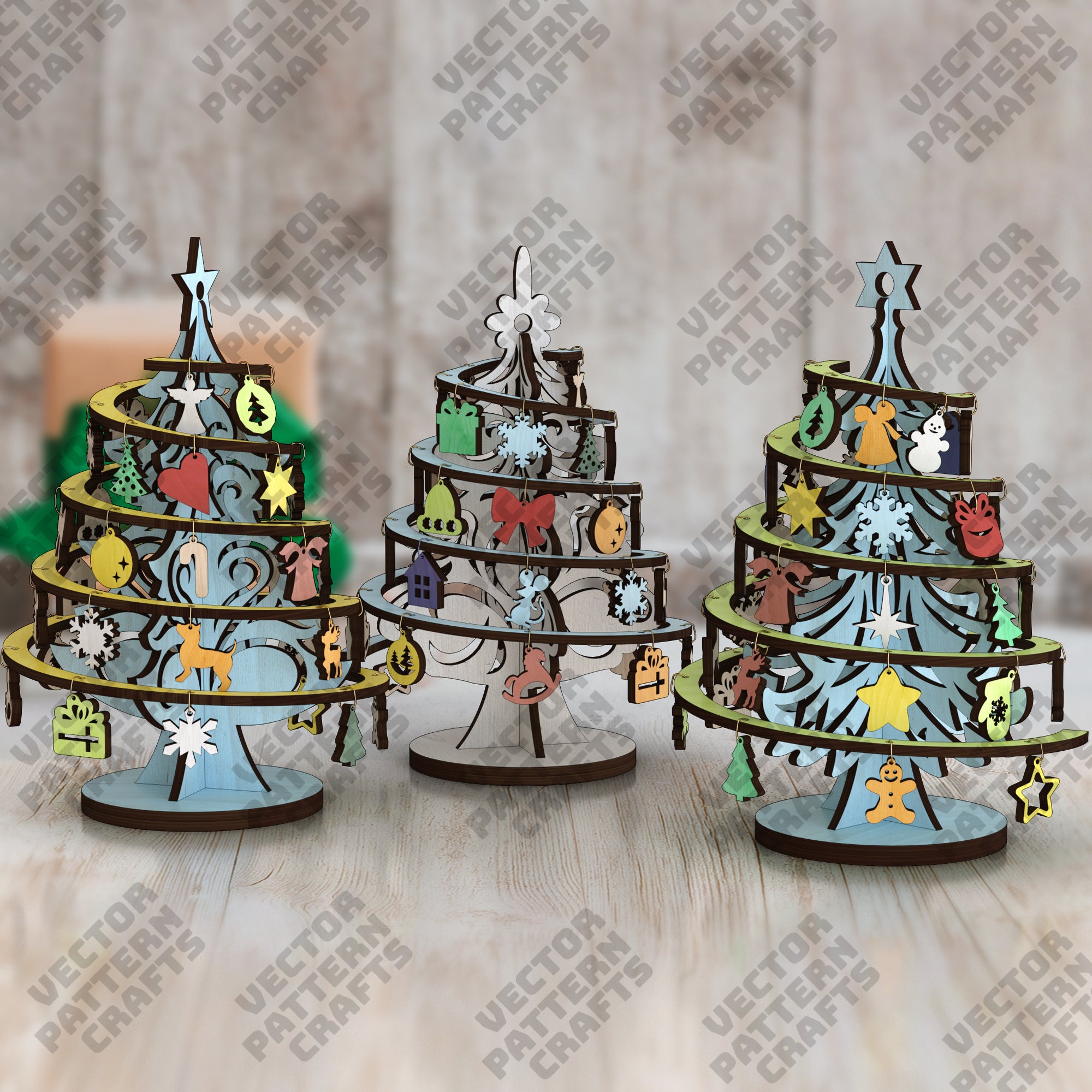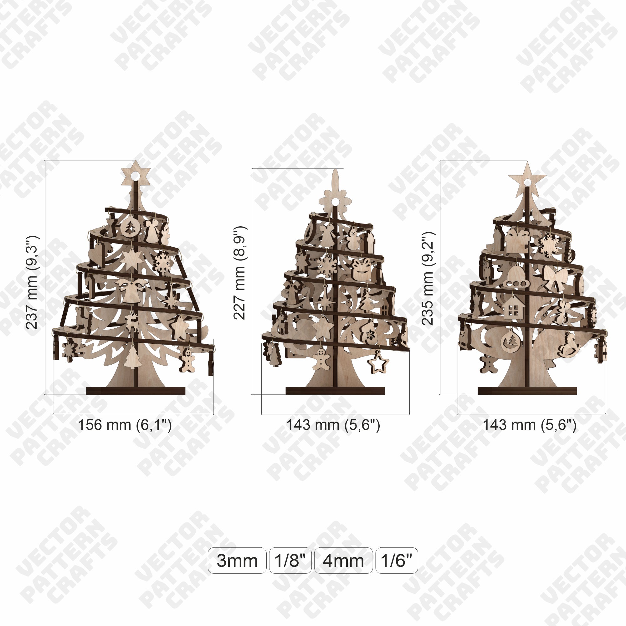 Lasergeschnittener Weihnachtsbaum Deko 3 Bundle SVG-Datei