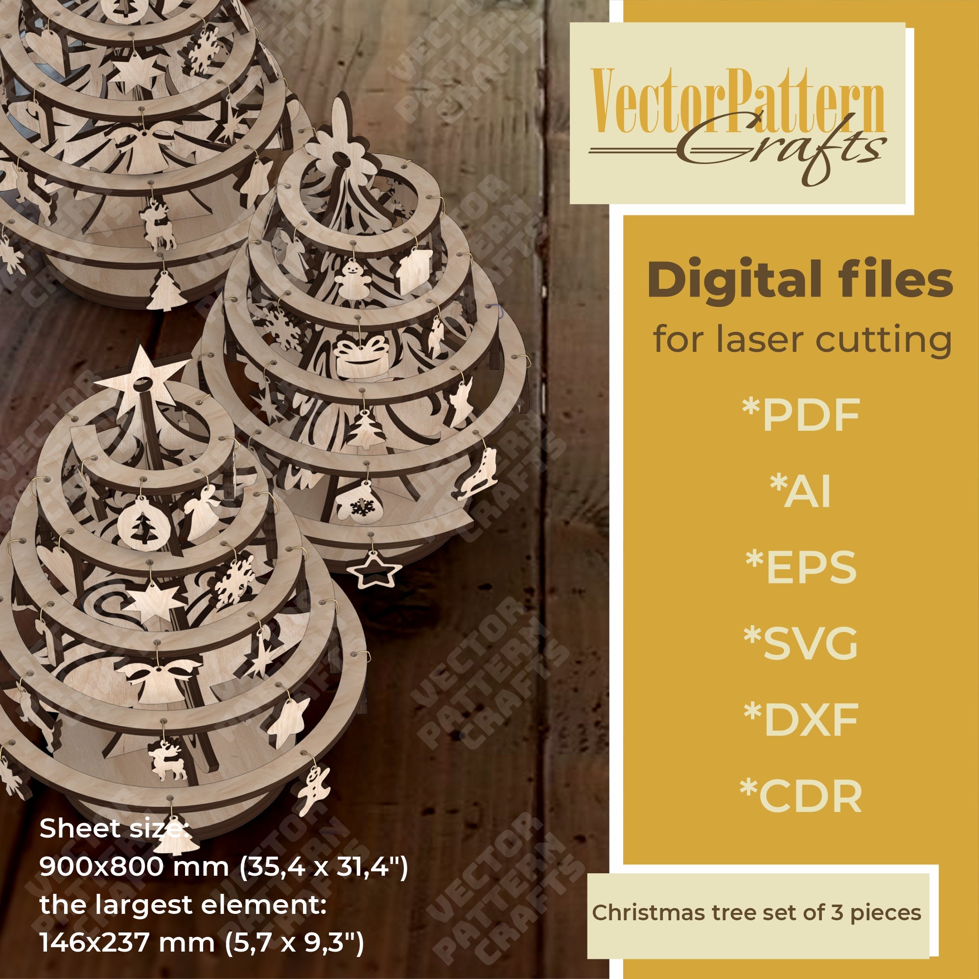 Sie erhalten die Dateien in den Formaten SVG, DXF, AI, EPS, CDR und PDF, die mit den meisten Laserschneidprogrammen kompatibel sind.