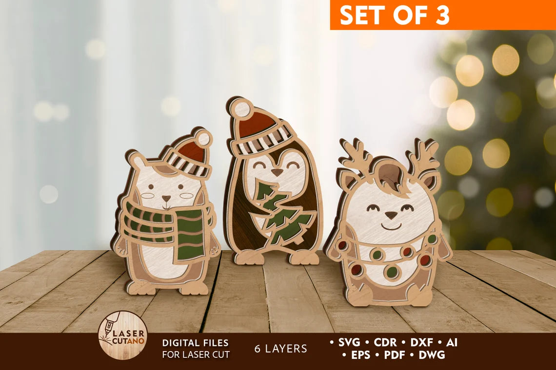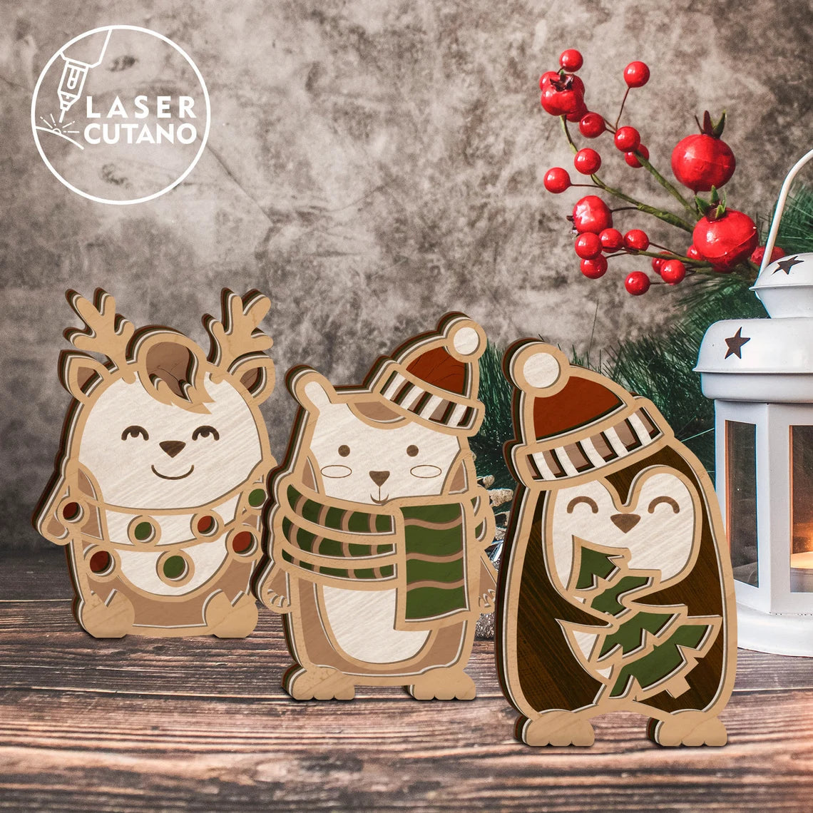 Tiere Weihnachten 3er Set Laser Cut SVG Datei
