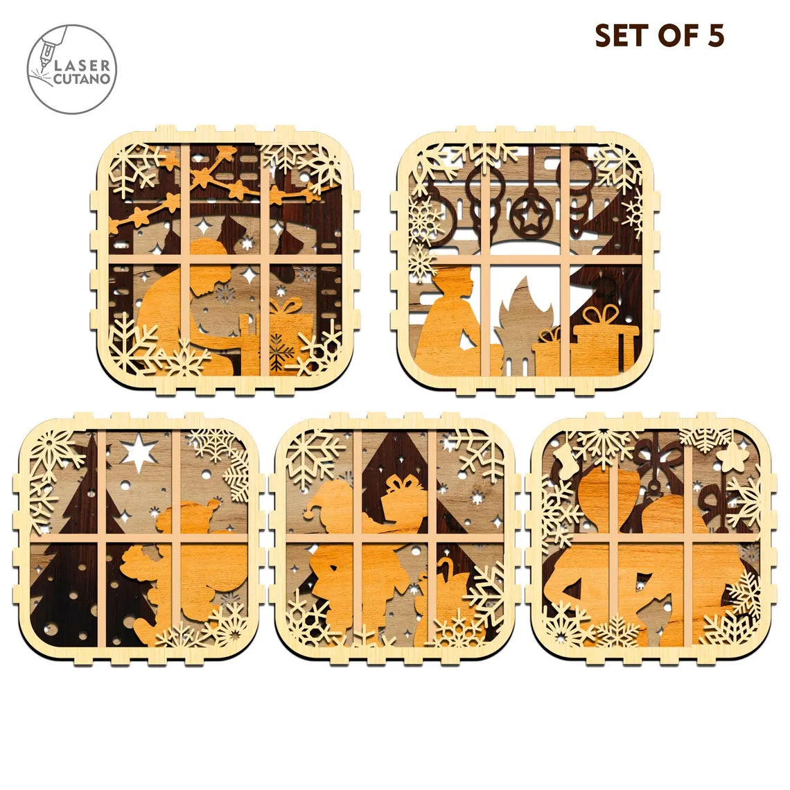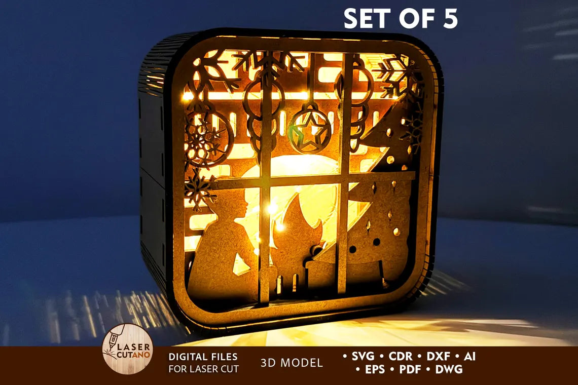 Weihnachten Shadow Box Kerzenhalter 5er Set Laser Cut SVG Datei