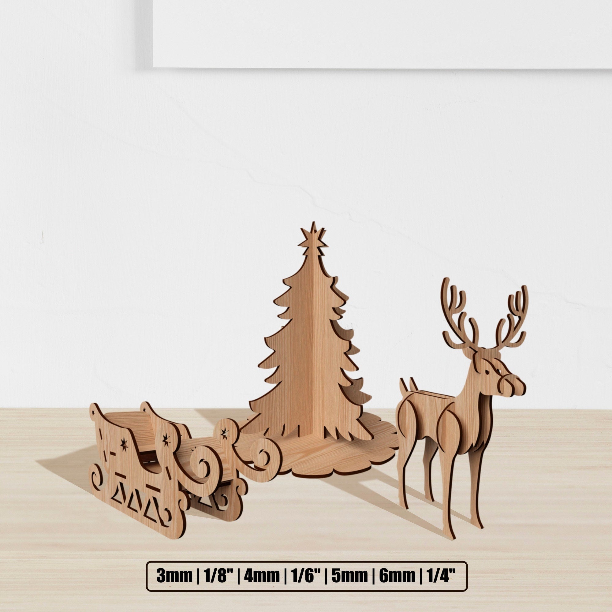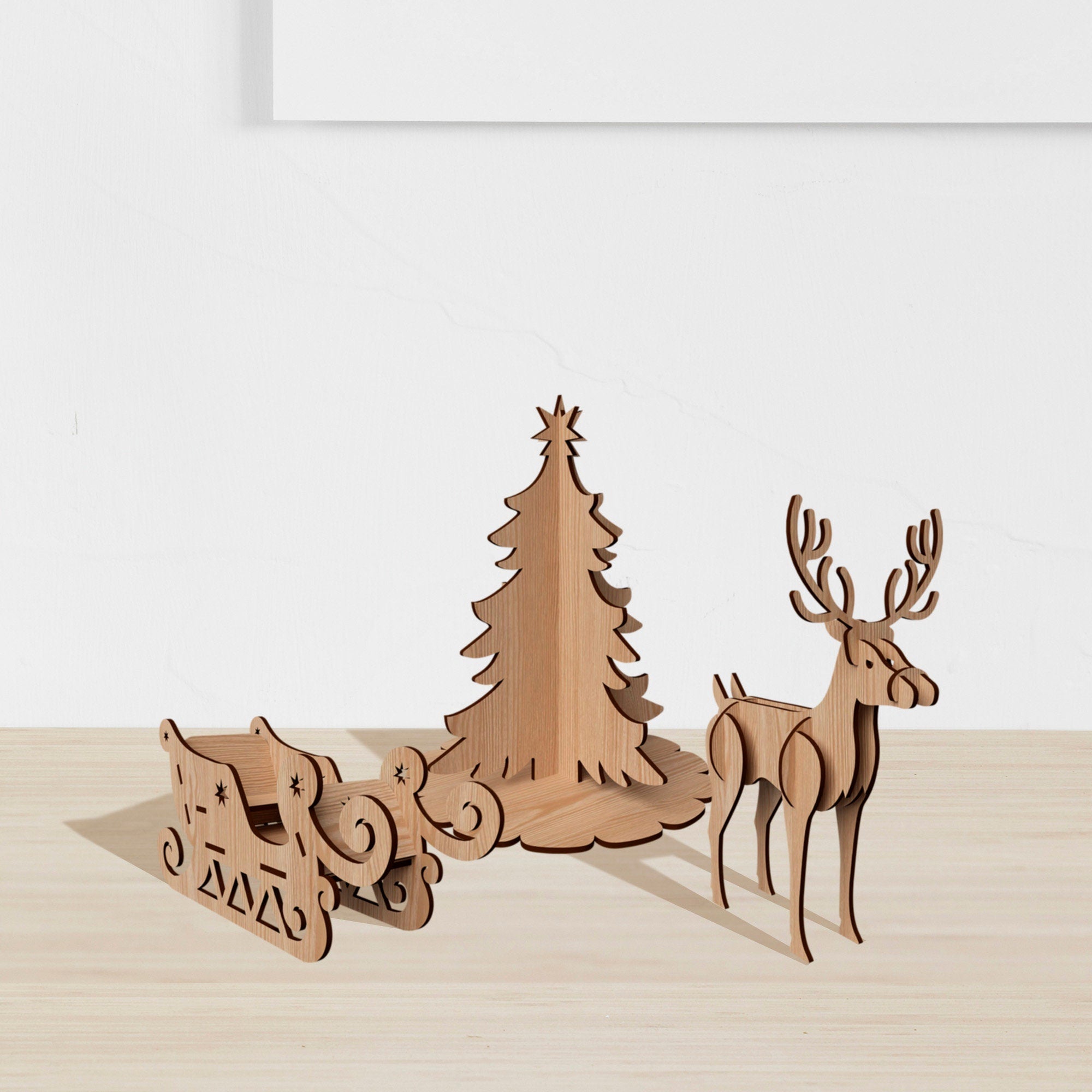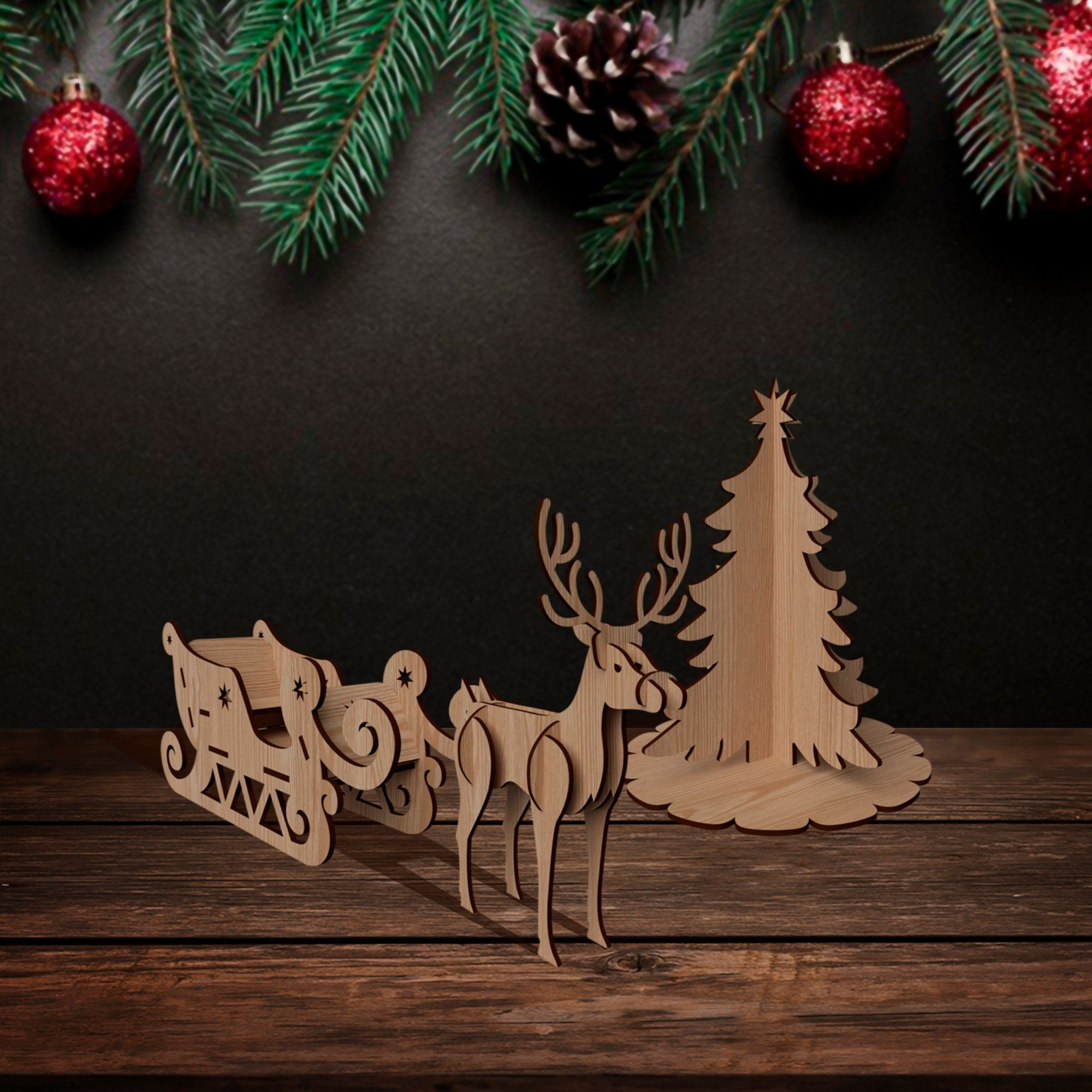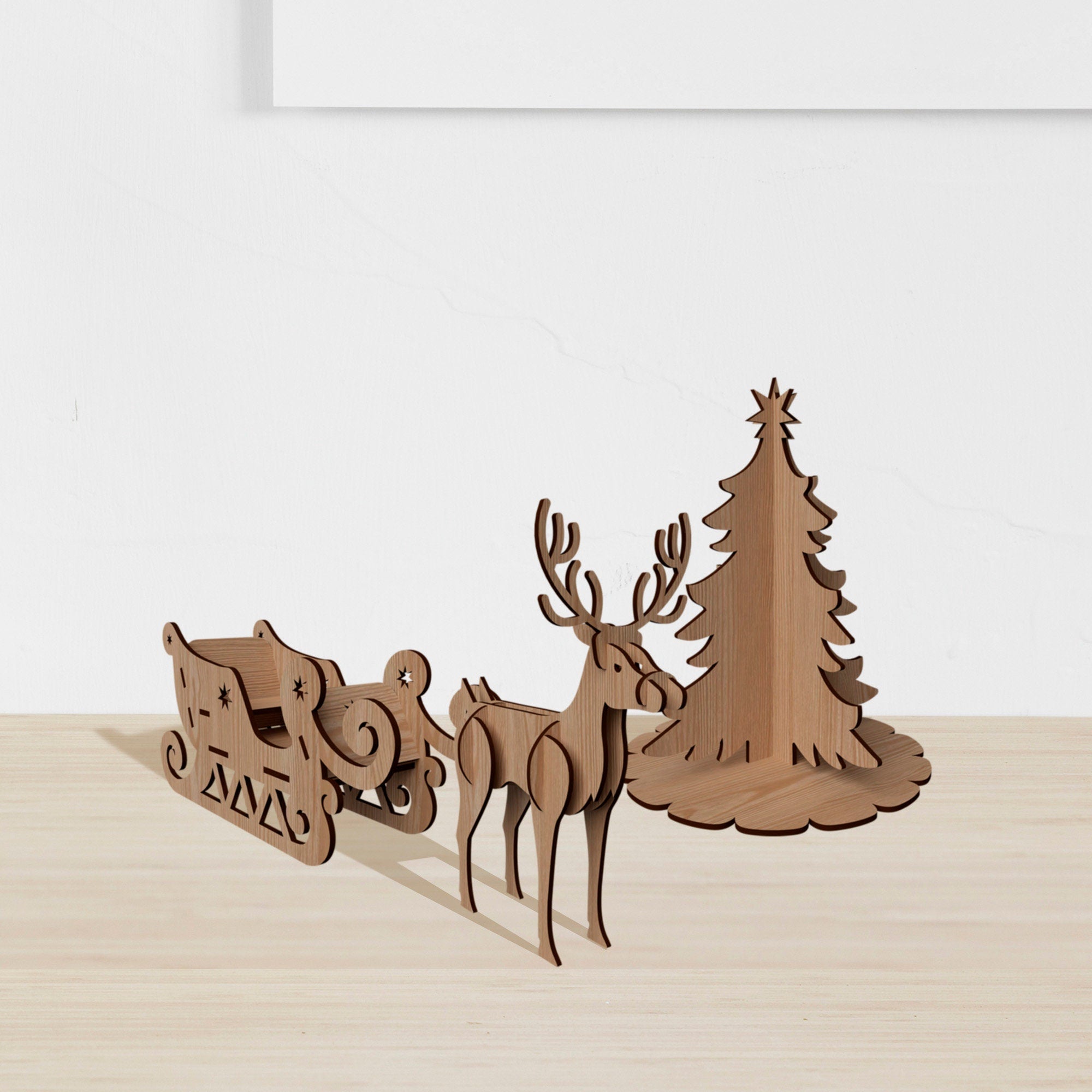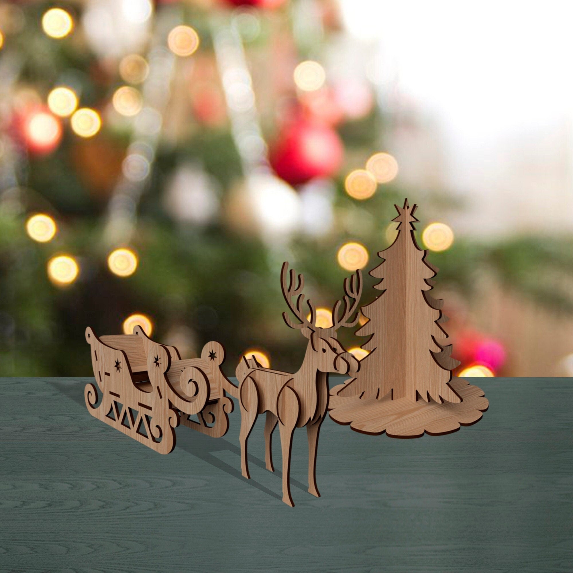 - Weihnachten stehend Schlitten Rentierbaumtisch Dekoration Laser Cut SVG -Datei