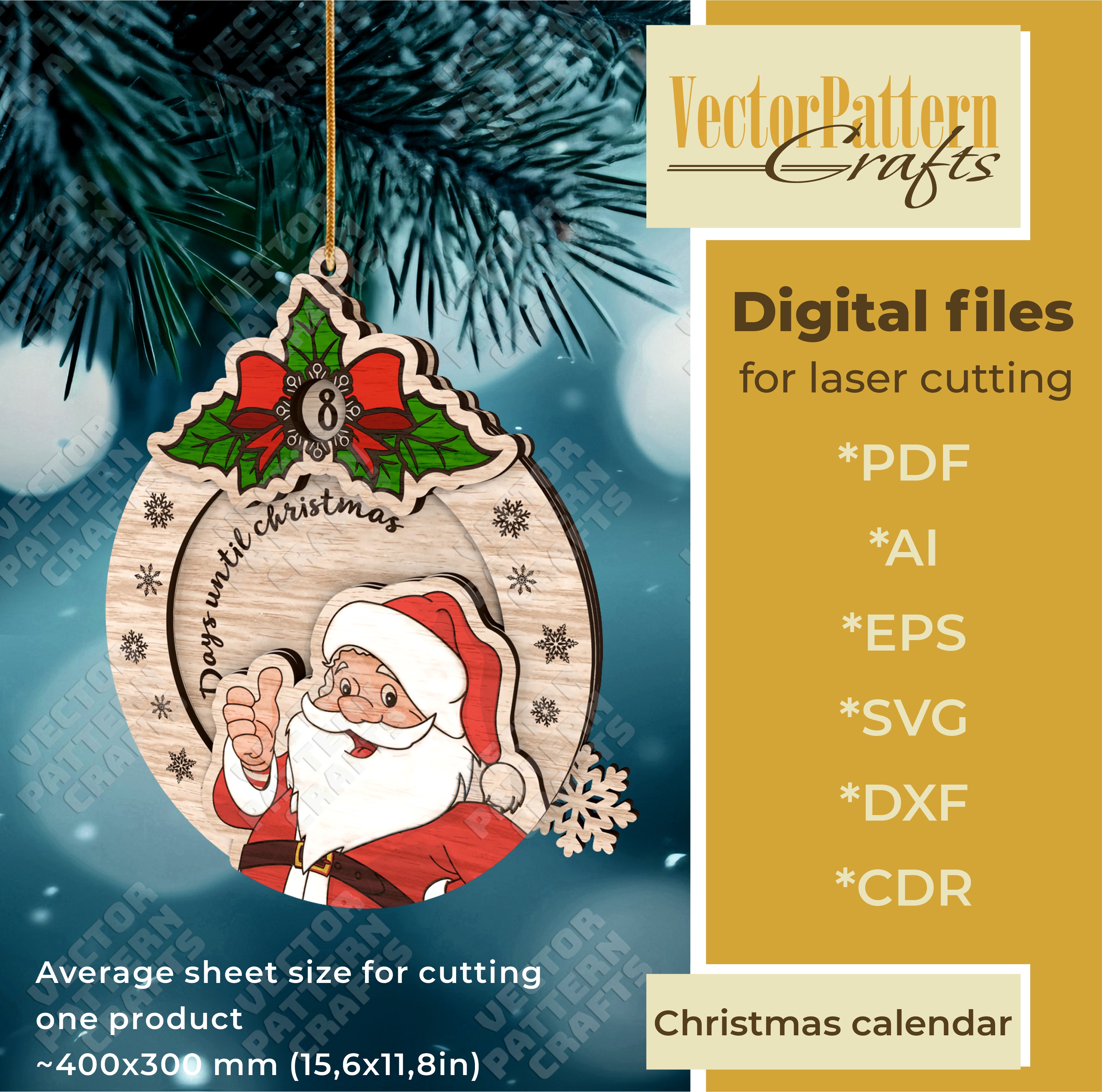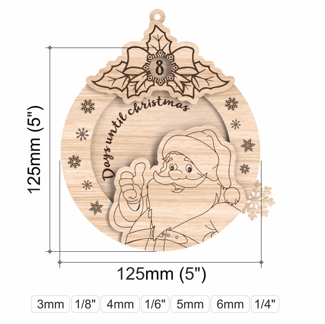 Lasergeschnittene Santa Christmas Countdown Kalender Ornament SVG-Datei