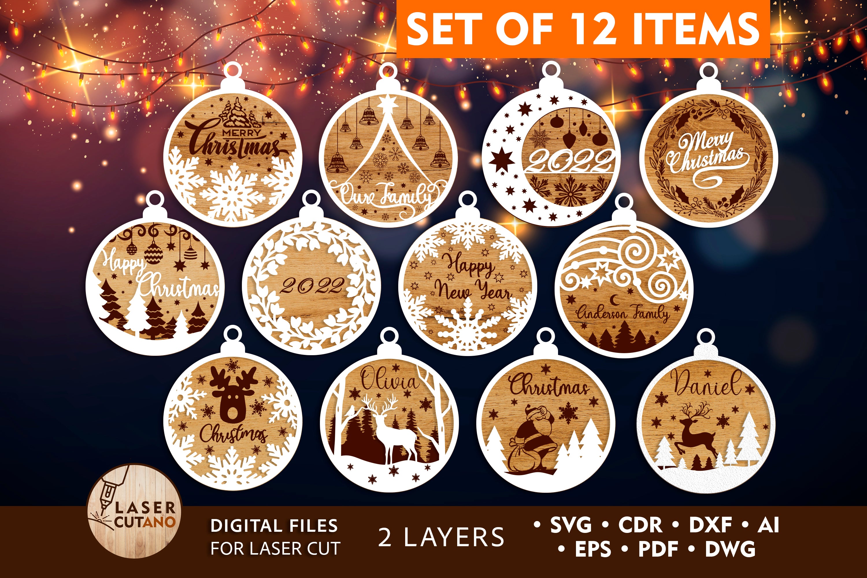 Weihnachtsornamente Set 12 lasergeschnittene SVG-Dateien