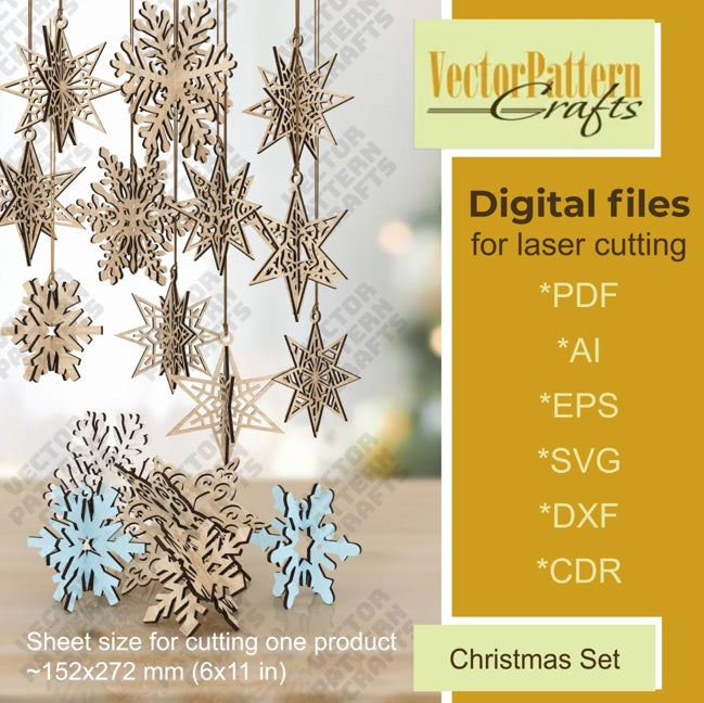 Lasergeschnittene 3D-Weihnachtsschneeflocken-Ornamente, 16 Bündel, SVG-Schneidedatei