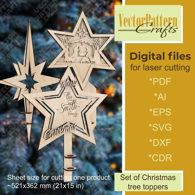 Weihnachtsstern Baumspitze 3 Bündel lasergeschnittene SVG-Datei