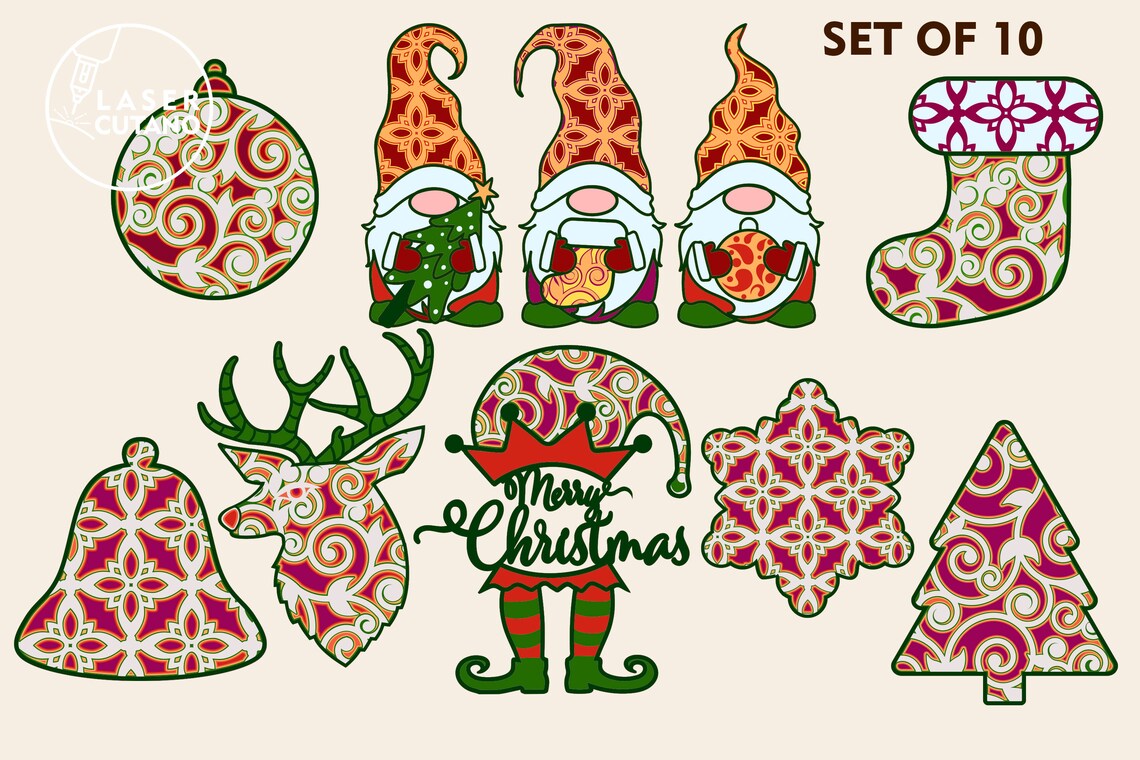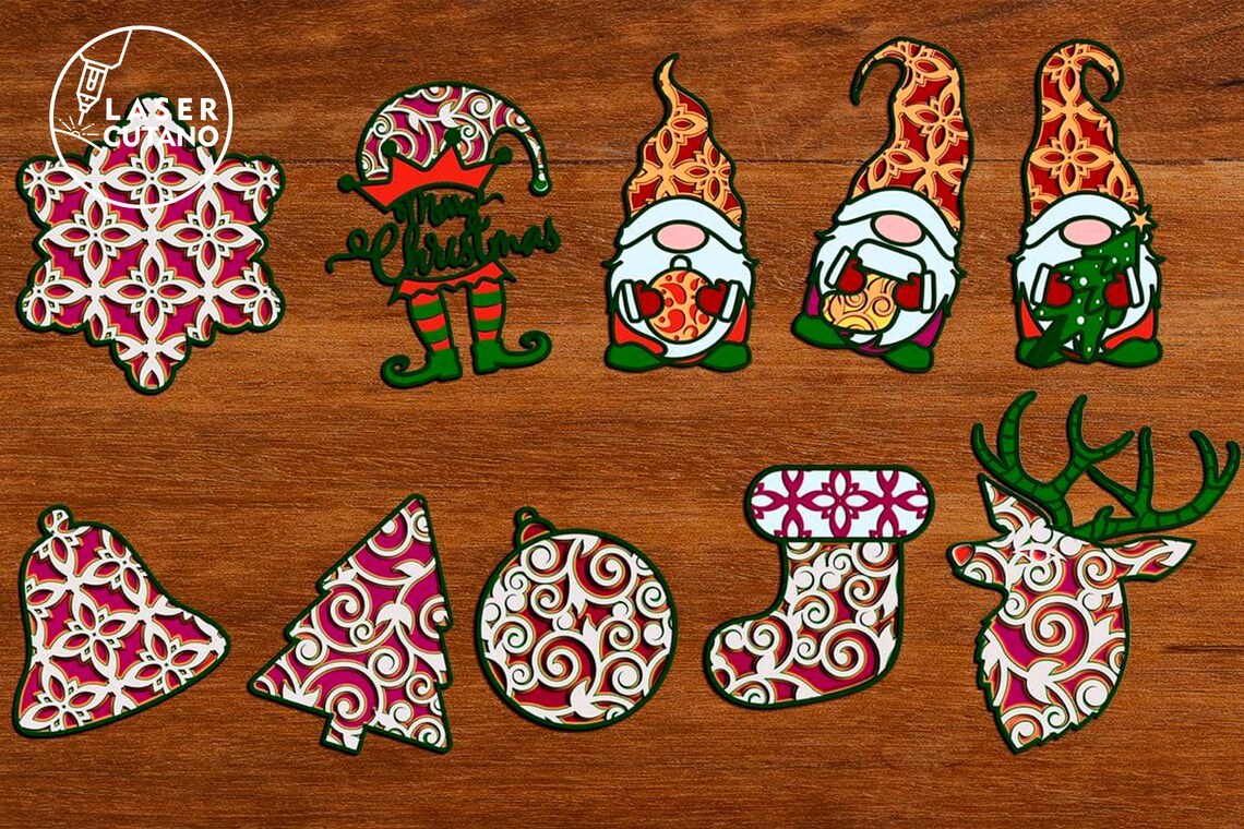 Lasergeschnittener Weihnachtsschmuck 10er-Set SVG-Datei