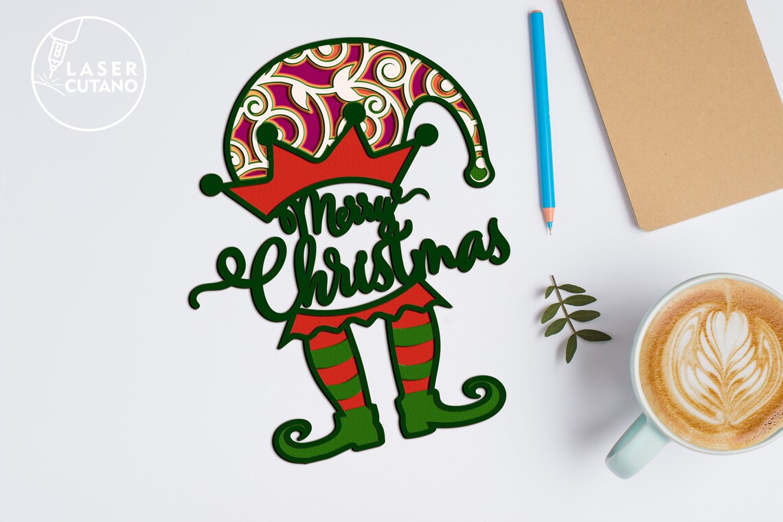 Wichtel Frohe Weihnachten Runder Türhänger lasergeschnittene SVG-Datei
